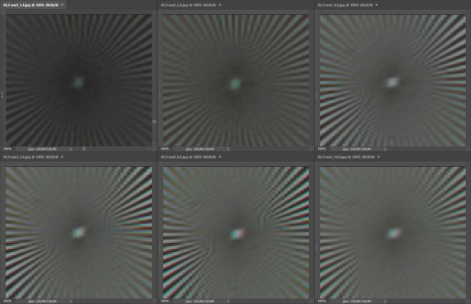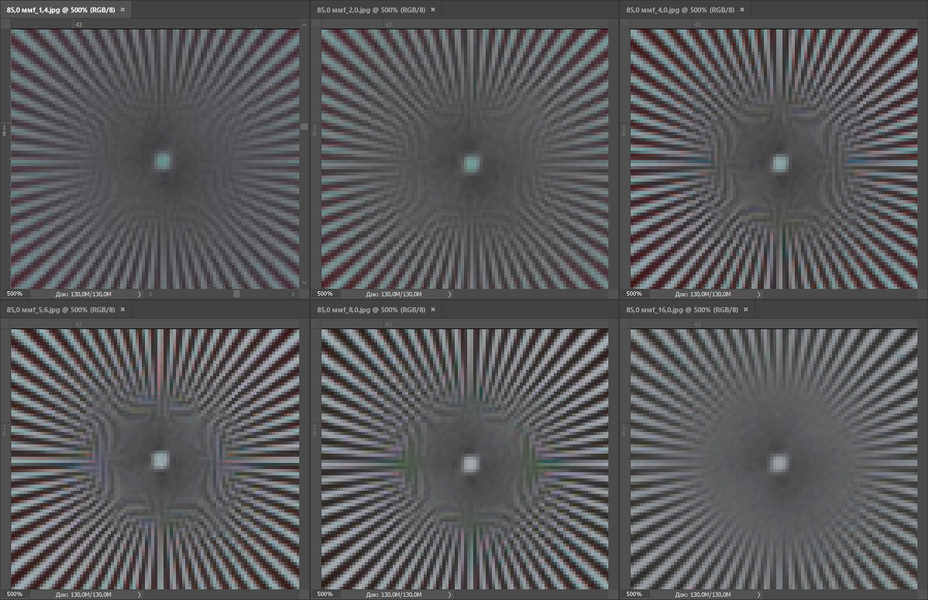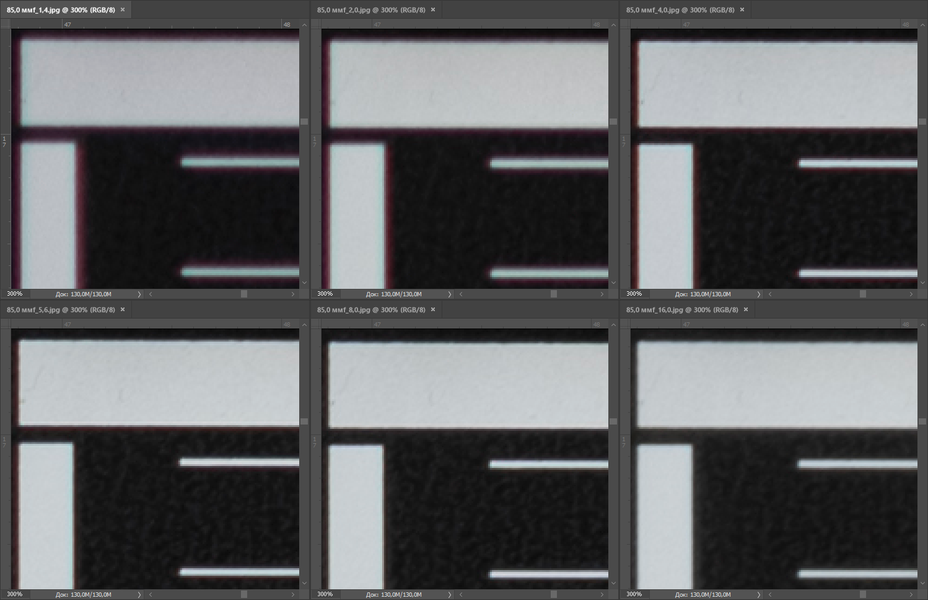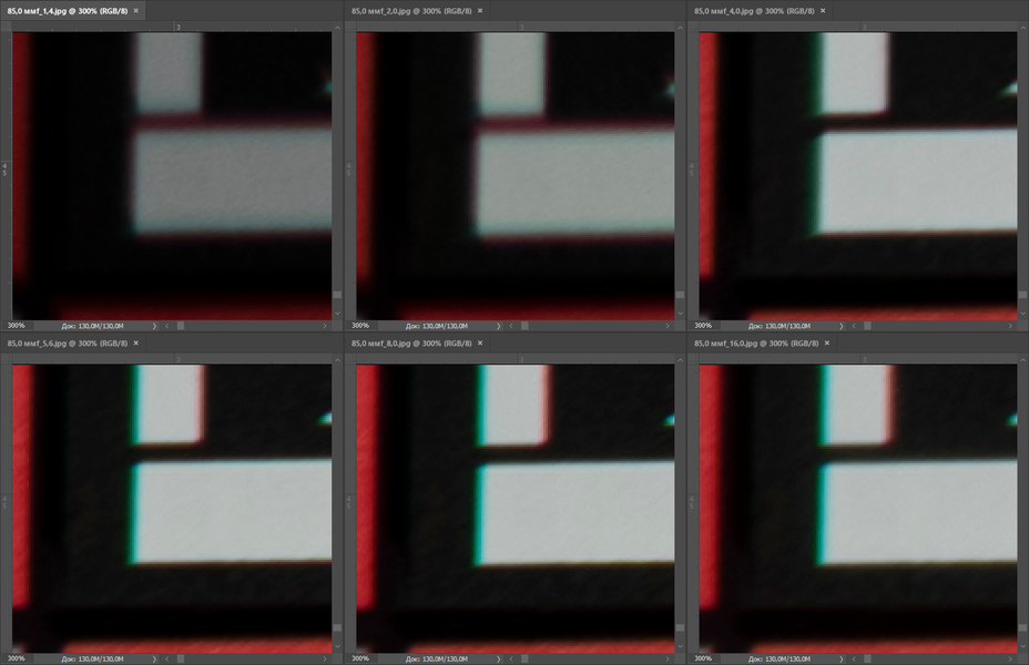 Отсняв фактурную детализированную поверхность на всех значениях диафрагмы, мы делаем вывод, что центр кадра является рабочим начиная с f/4, а вот края кадра будут мягкими во всем диапазоне значений относительного отверстия. Конечно, для портретов края кадра редко бывают важны, да и в центре кадра многие портретисты не любят излишнюю резкость, но все же от светосильного фикса мы вправе ожидать большего.