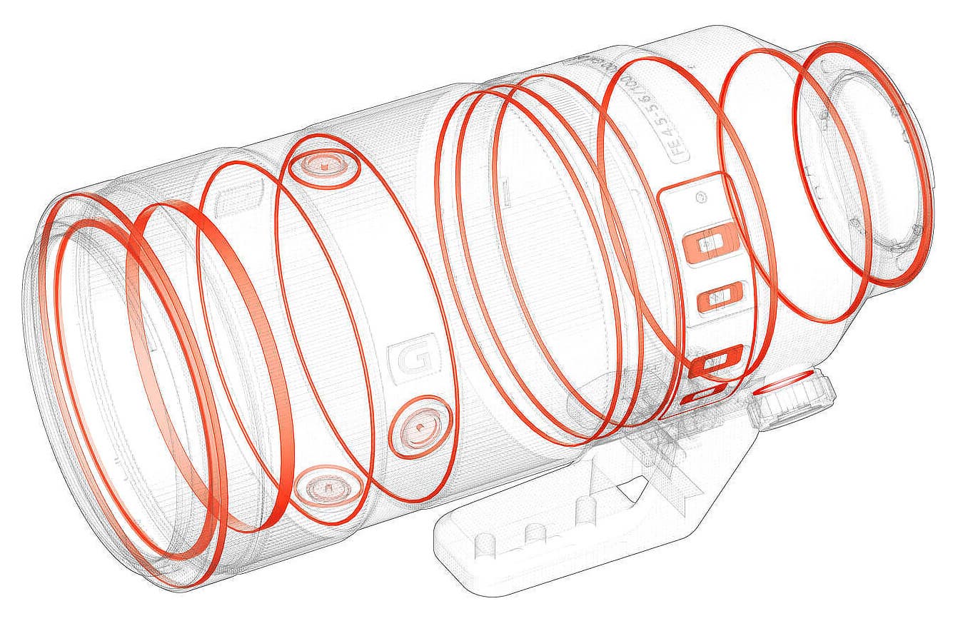 Объектив герметизирован во всех ключевых зонах: по периметру передней линзы, колец фокусировки и зумирования, всех органов управления и т. д.