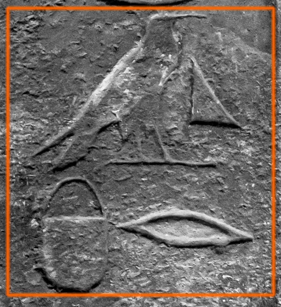 На приведенном рисунке иероглифы следует читать справа налево: соха (мер), складка ткани (с) и символ жизни (анх) — Мересанх.