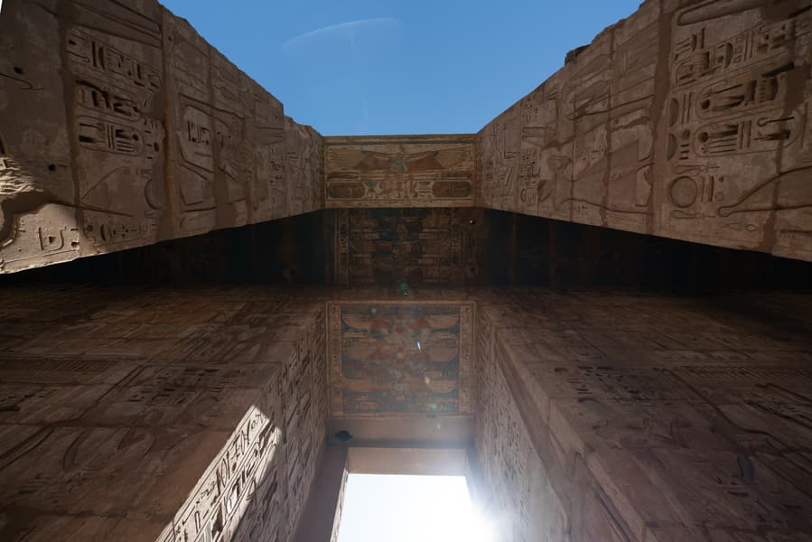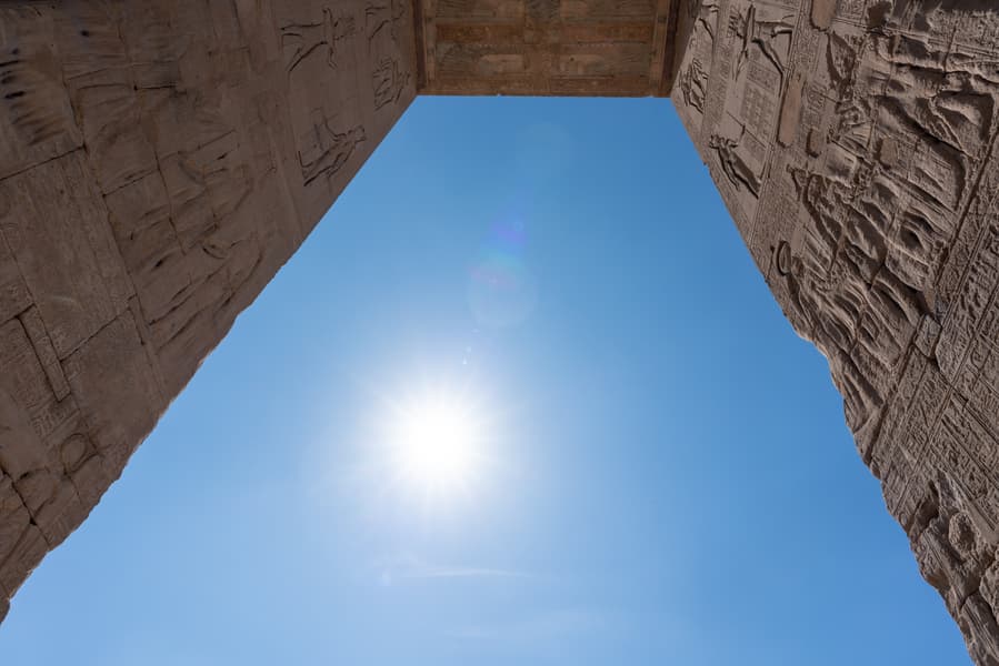 Разумеется, поведение оптики в подобных ситуациях следует оценивать при съемке против солнца на открытом воздухе. Для большей иллюстративности я приведу кадры из других древнеегипетских мест, которые мне довелось посетить в рамках поездки.