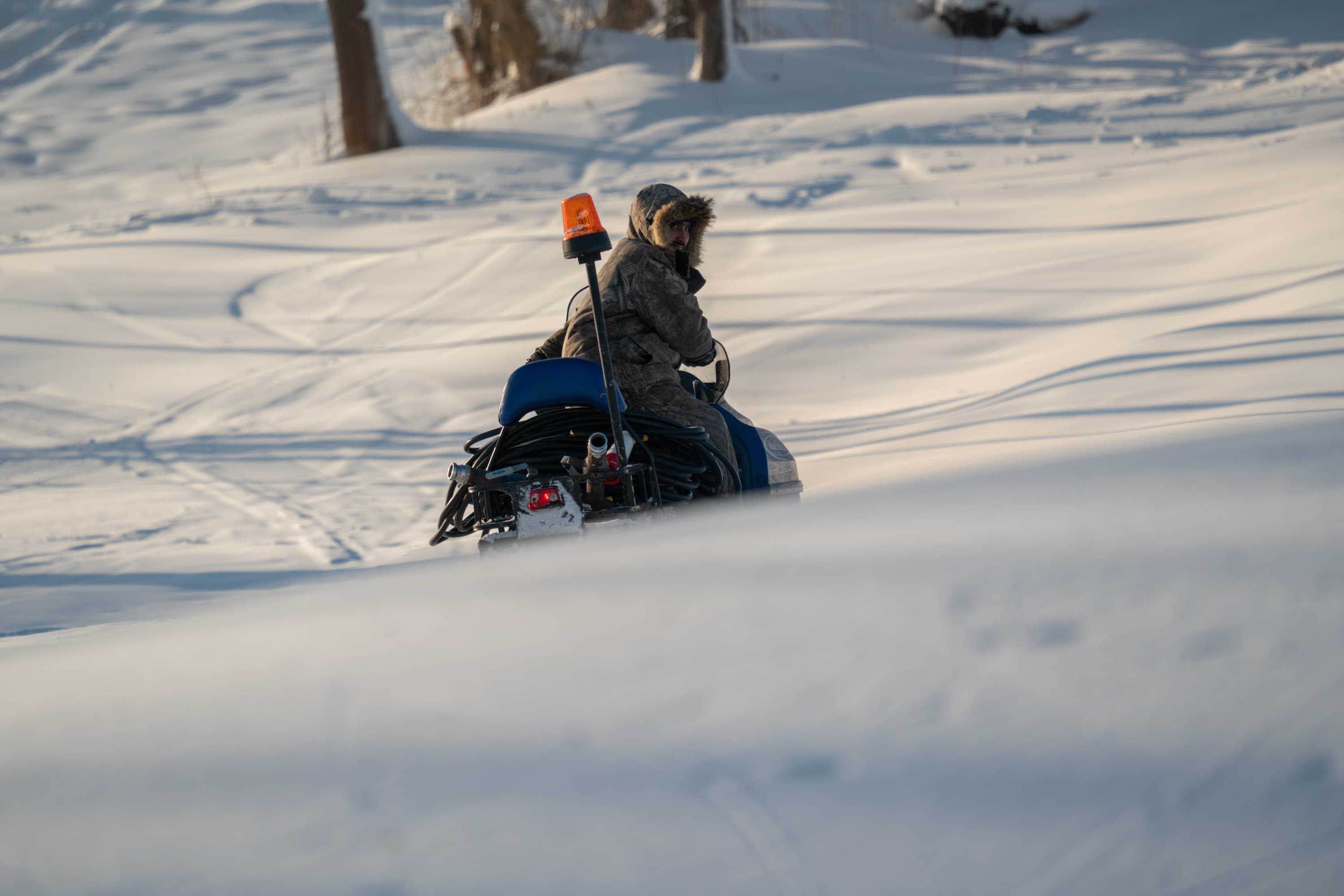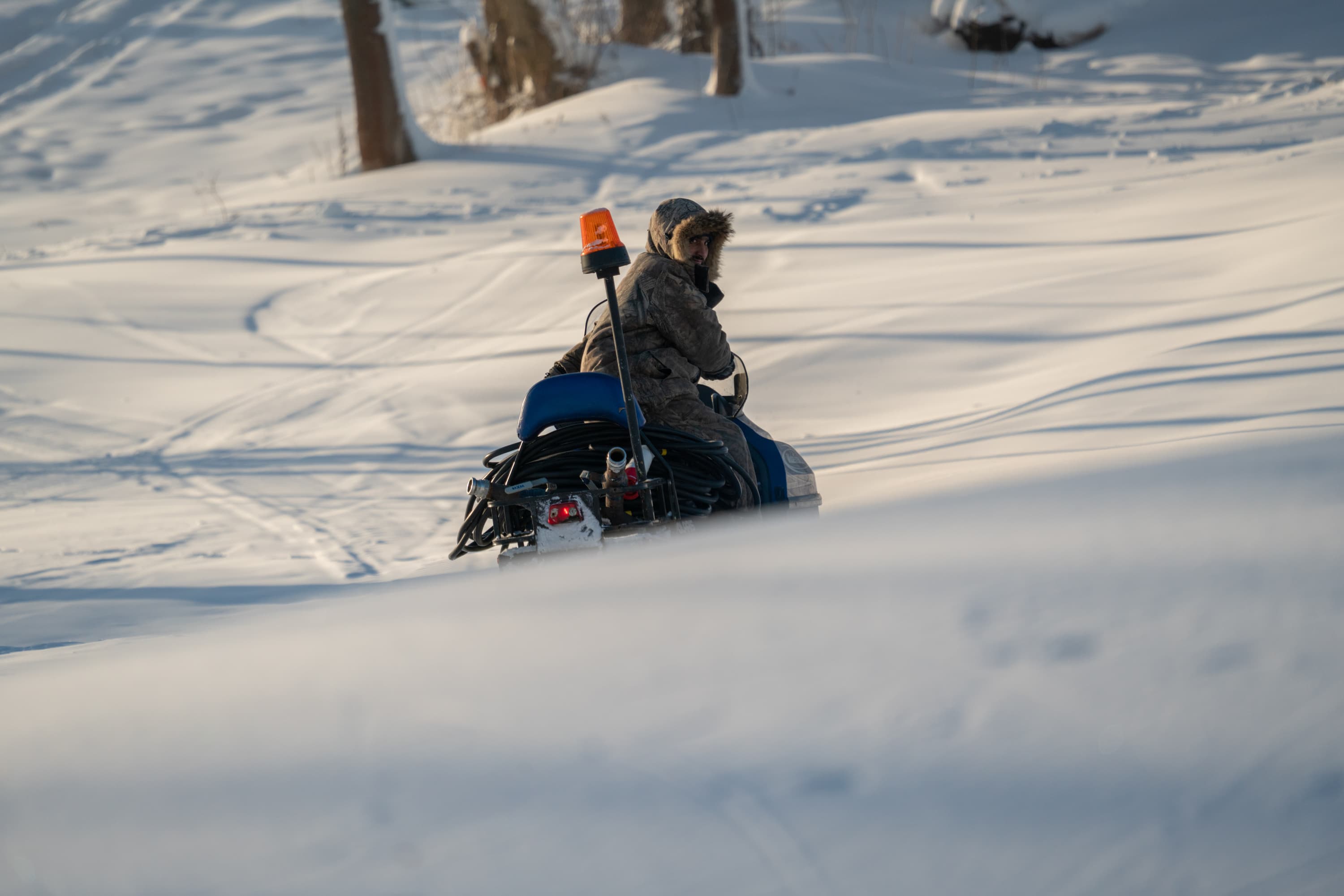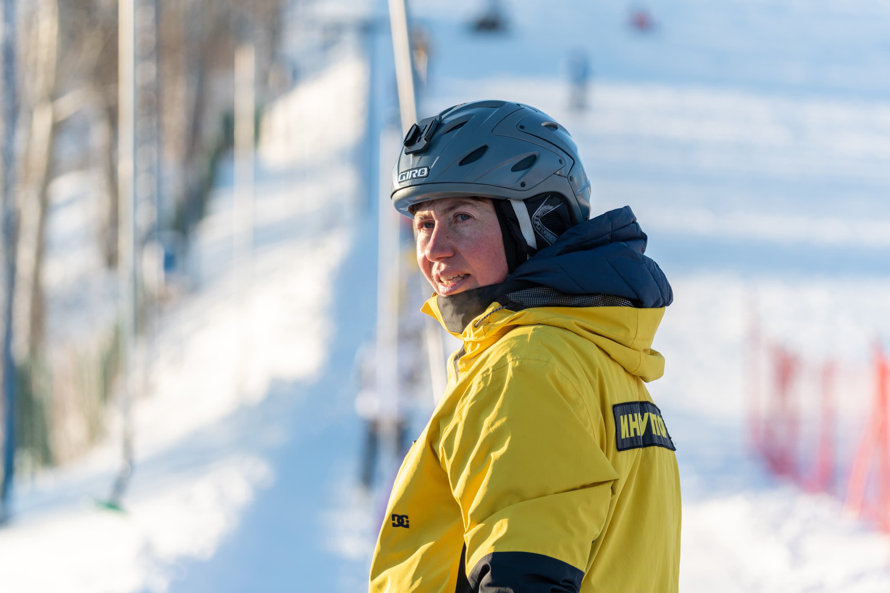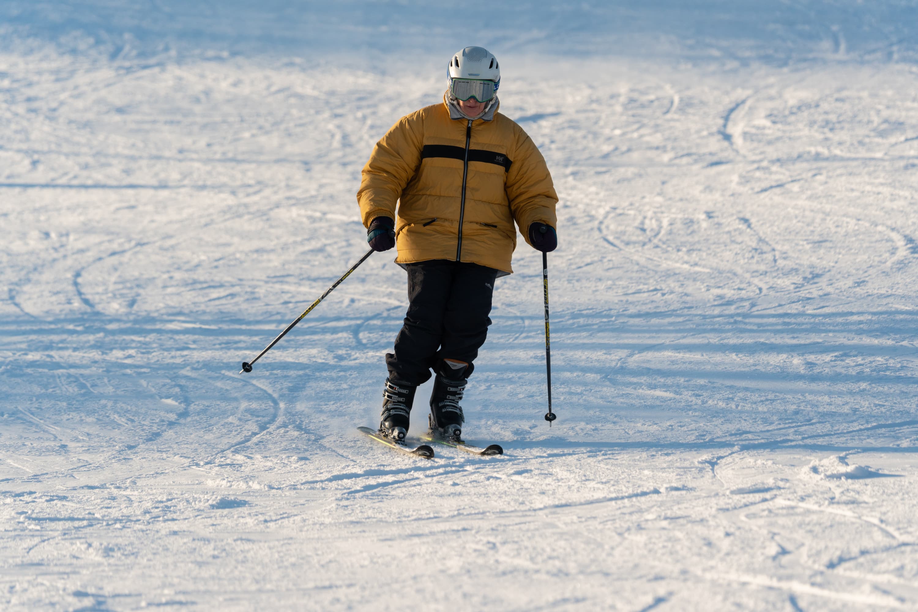 В динамичных сюжетах активация непрерывной автофокусировки (AF-C) позволяет объективу работать практически без брака. Серия из 9 кадров, представленных ниже, представляет собой сочетание трех последовательностей фиксации горнолыжного спуска. Вначале мы нажимали кнопку спуска затвора до половины, а затем трижды нажимали ее до конца. Одновременно перекомпоновывали кадр и снимали фигуру лыжника с проводкой вправо и влево.