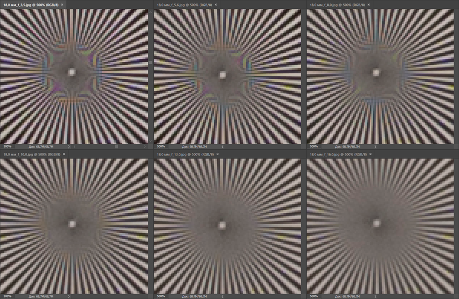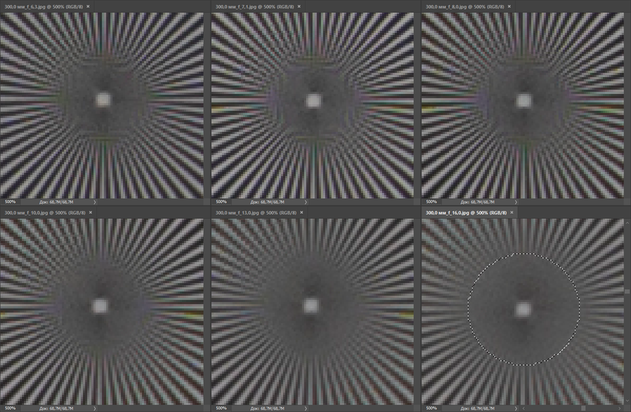 | Разрешение, центр кадра | Разрешение, край кадра |