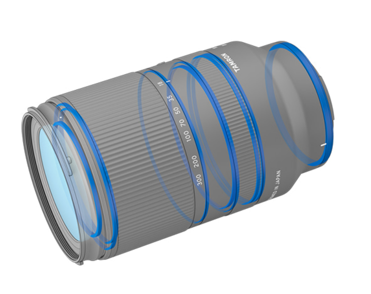 Индекс Di (Digitally integrated) в названии модели указывает, что она оптимизирована для современных цифровых камер, Di III означает, что объектив рассчитан на использование с беззеркальными аппаратами, а Di III-A указывает на камеры с сенсором типоразмера APS-C, то есть с коэффициентом масштабирования 1,5. Поэтому разбег зумирования в полнокадровом эквиваленте составляет 27—450 мм.