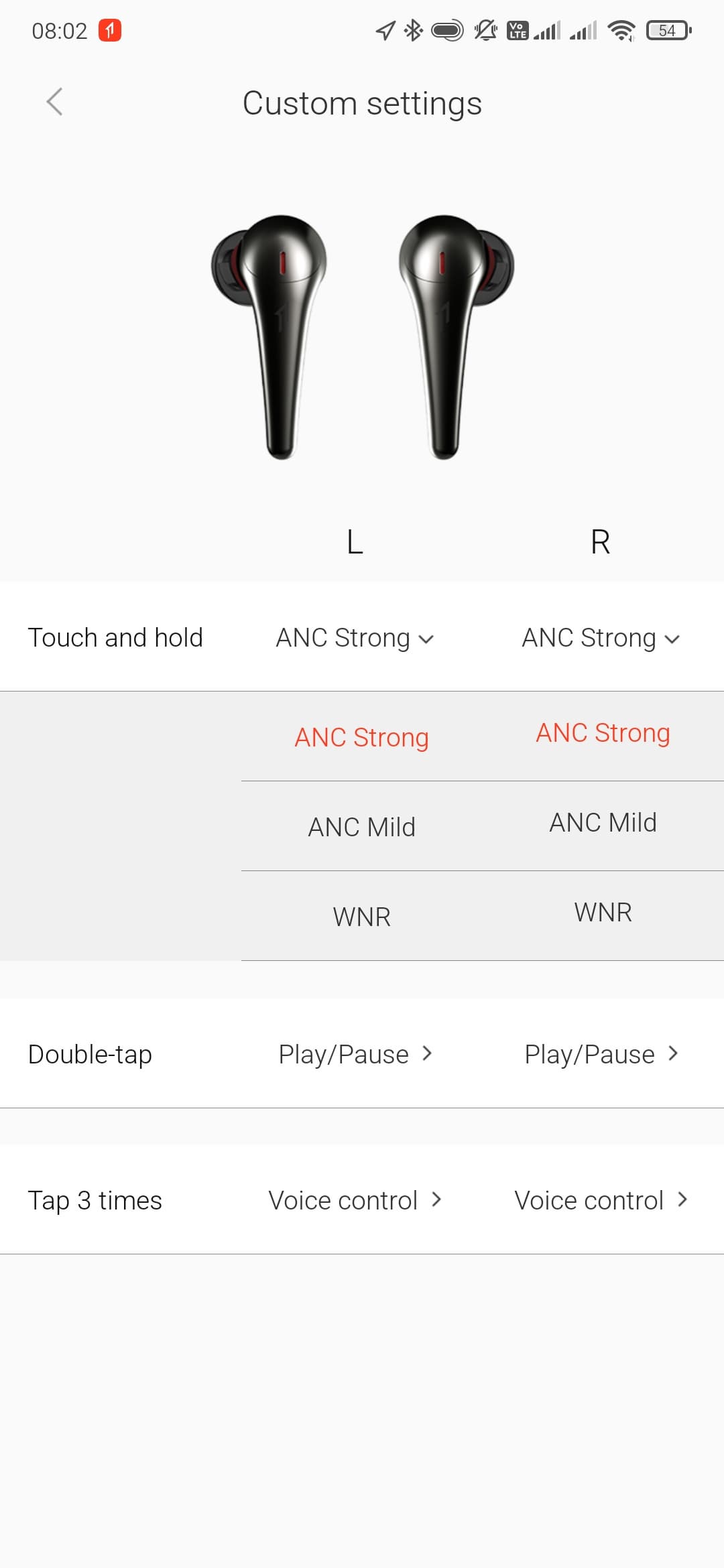 Как уже упоминалось выше, профиль управления есть возможность полностью настроить под себя. На длинное нажатие можно «повесить» любой из режимов работы, при этом правый и левый наушник могут активировать разные. Двойной и тройной тап могут отвечать за воспроизведение, перелистывание треков, изменение громкости или активацию голосового помощника.