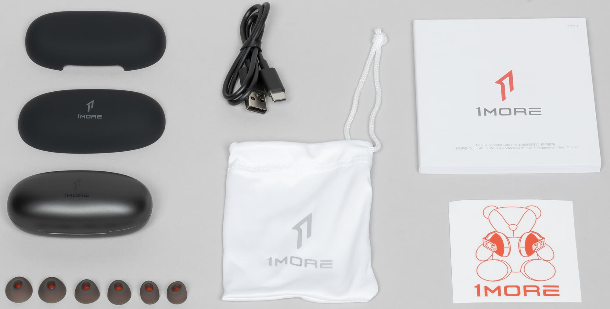 Упаковка продуктов 1More зачастую выглядит лучше, чем у многих из попадавших нам в руки «премиальных» решений. ComfoBuds Pro в этом отношении не стали исключением. Поставляются они в картонной коробке с магнитной крышкой, которая откидывается влево.