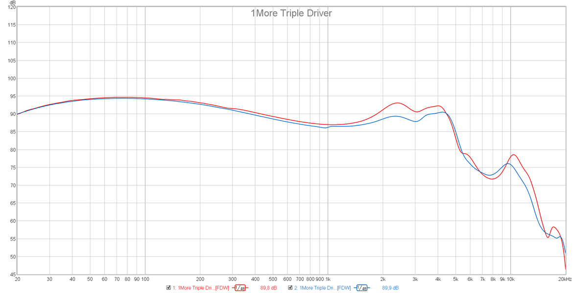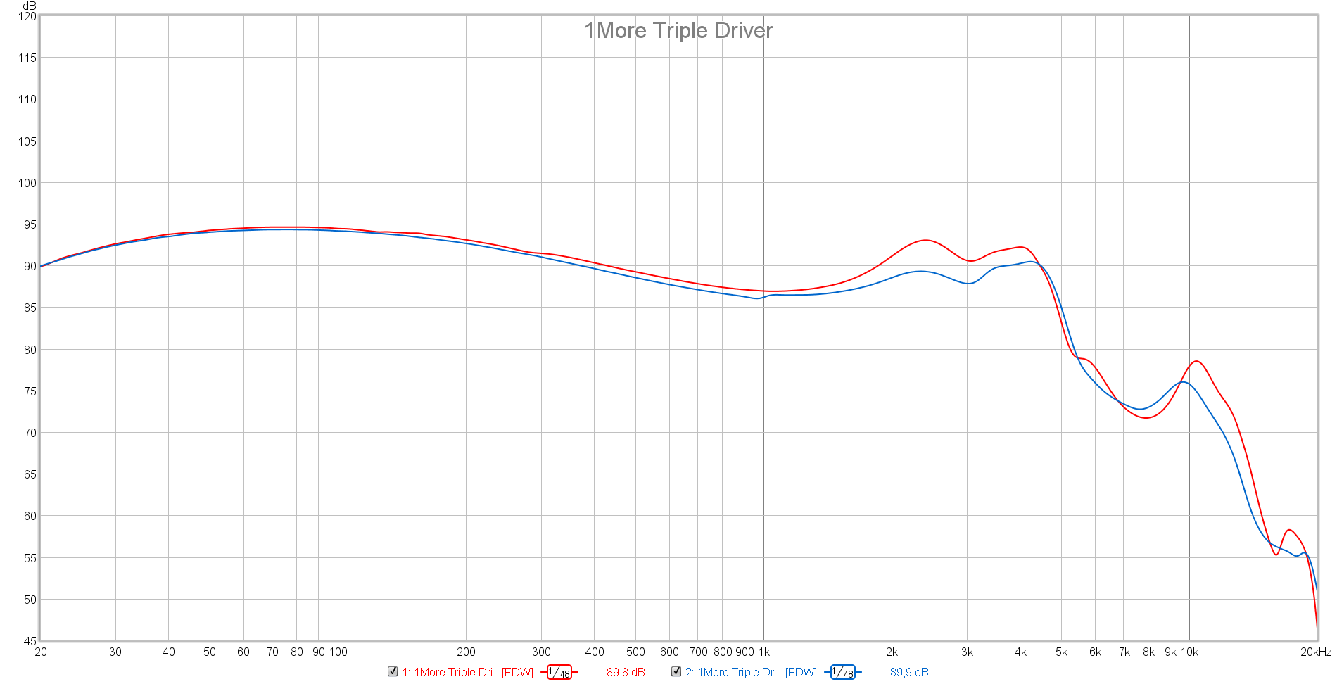 При этом в интернете можно найти немало графиков АЧХ тех же 1More Triple Driver Hybrid, на которых нет спада на ВЧ, а акцент на верхней середине несколько менее ярко выражен. Вот, к примеру, график весьма авторитетного портала Rtings.com. Который, кстати, называет героев сегодняшнего теста «лучшими внутриканальными наушниками».