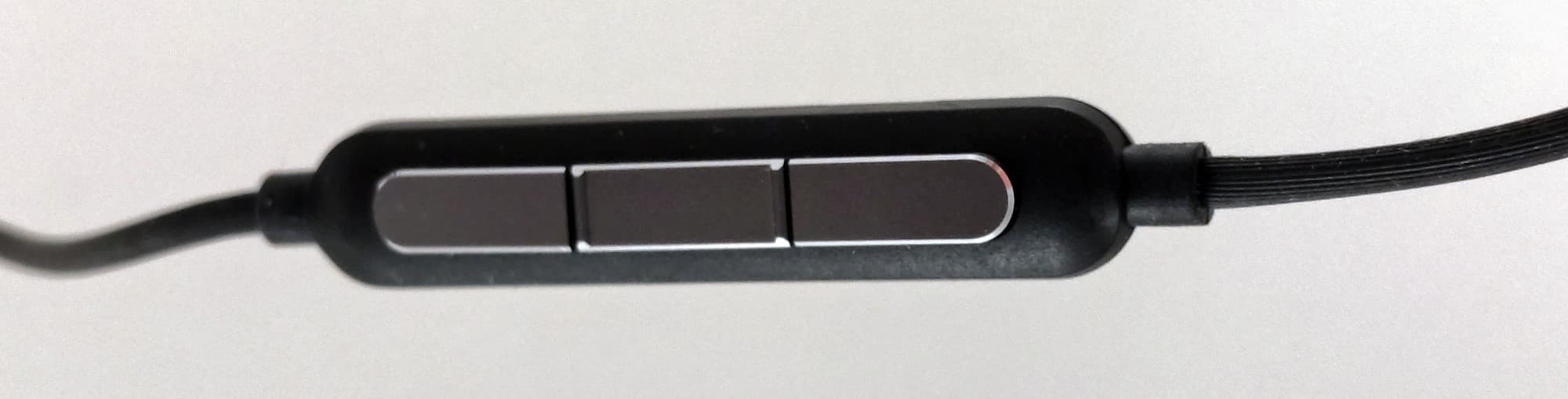 Средняя кнопка пульта выделена двумя малозаметными, но хорошо различимыми на ощупь выступами. На нажатия все кнопки реагируют корректно, ход у них совсем небольшой, но клик при этом четкий и приятный. Функции кнопок зависят от используемого устройства и его операционной системы, в смартфоне на Android действия стандартные — верхняя и нижняя регулируют громкость, средняя управляет воспроизведением по одинарному клику и переключает на следующий трек — по двойному.