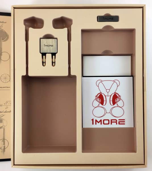 Упаковкой своих наушников 1More старательно подчеркивает их статус «доступных продуктов премиального уровня». Герои сегодняшнего обзора поставляются в крупной коробке с качественной полиграфией, выглядит которая очень солидно. Внешняя ее часть выполнена в матовом черном цвете, внутренняя — в золотисто-бежевых оттенках.