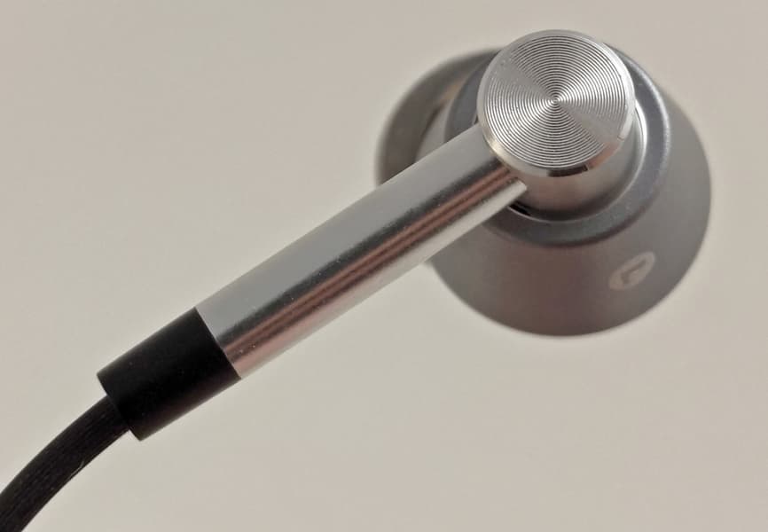 Внешняя часть корпуса, соединяющая сами наушники и «палочку» для крепления провода, имеет фактуру из концентрических кругов.