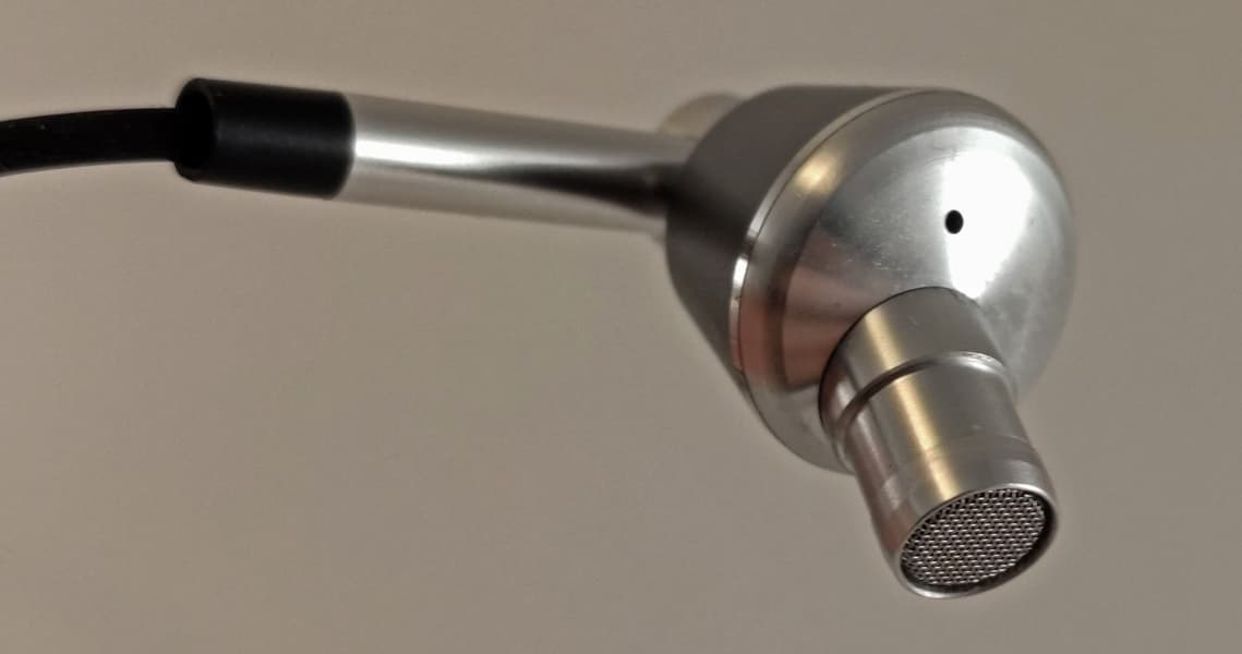 Звуковой канал сравнительно длинный и выходит из наушника под углом, отверстие закрыто защитной сеткой.