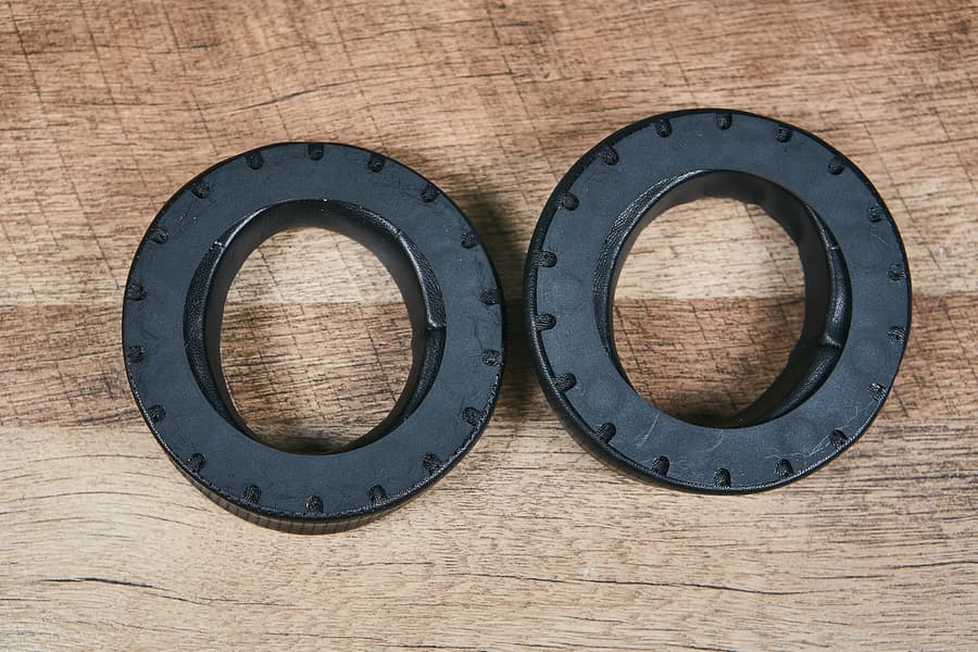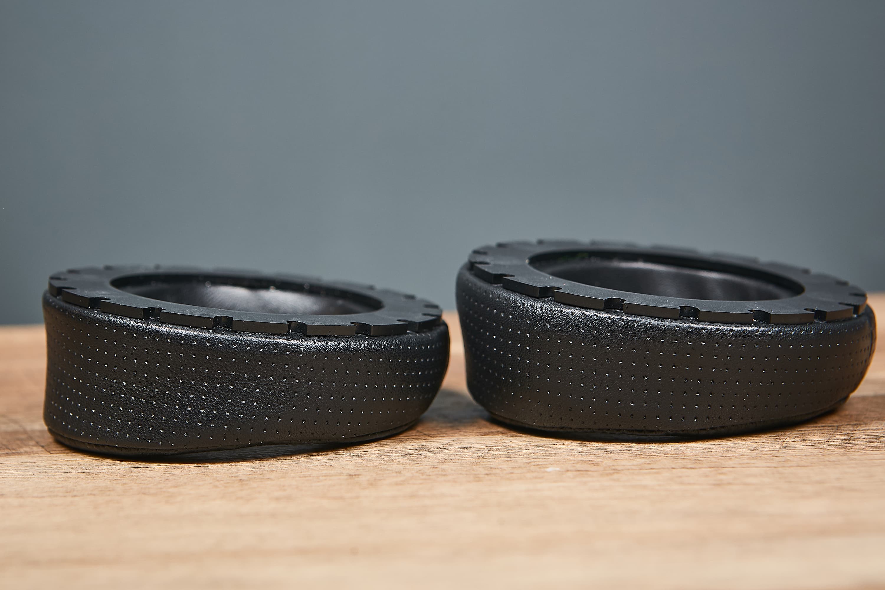 На внутренней стороне размещены элементы, с помощью которых осуществляется магнитное крепление амбушюров к чашкам наушников. Вырезы на них попадают в выступающие детали, которые мы увидим ниже. Благодаря такой конструкции амбушюры можно вращать и фиксировать в разных положениях, добиваясь лучшего прилегания и уровня комфорта за счет изменения позиции утолщенной части.