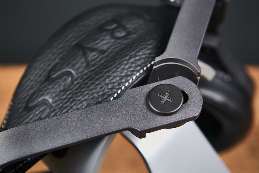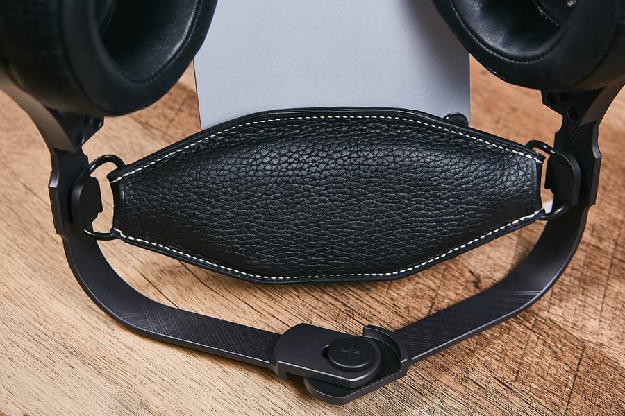 Для мягкого контакта с головой предусмотрен «гамак» из кожи. На верхнюю его сторону методом тиснения нанесено название наушников, которое хорошо заметно, но при этом не слишком бросается в глаза.