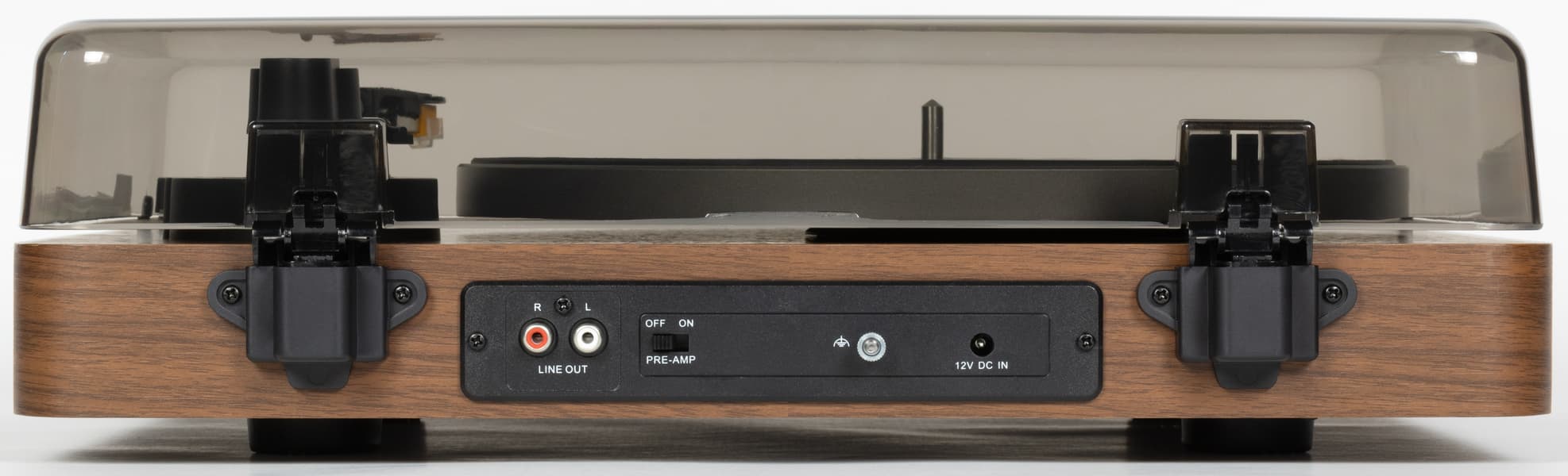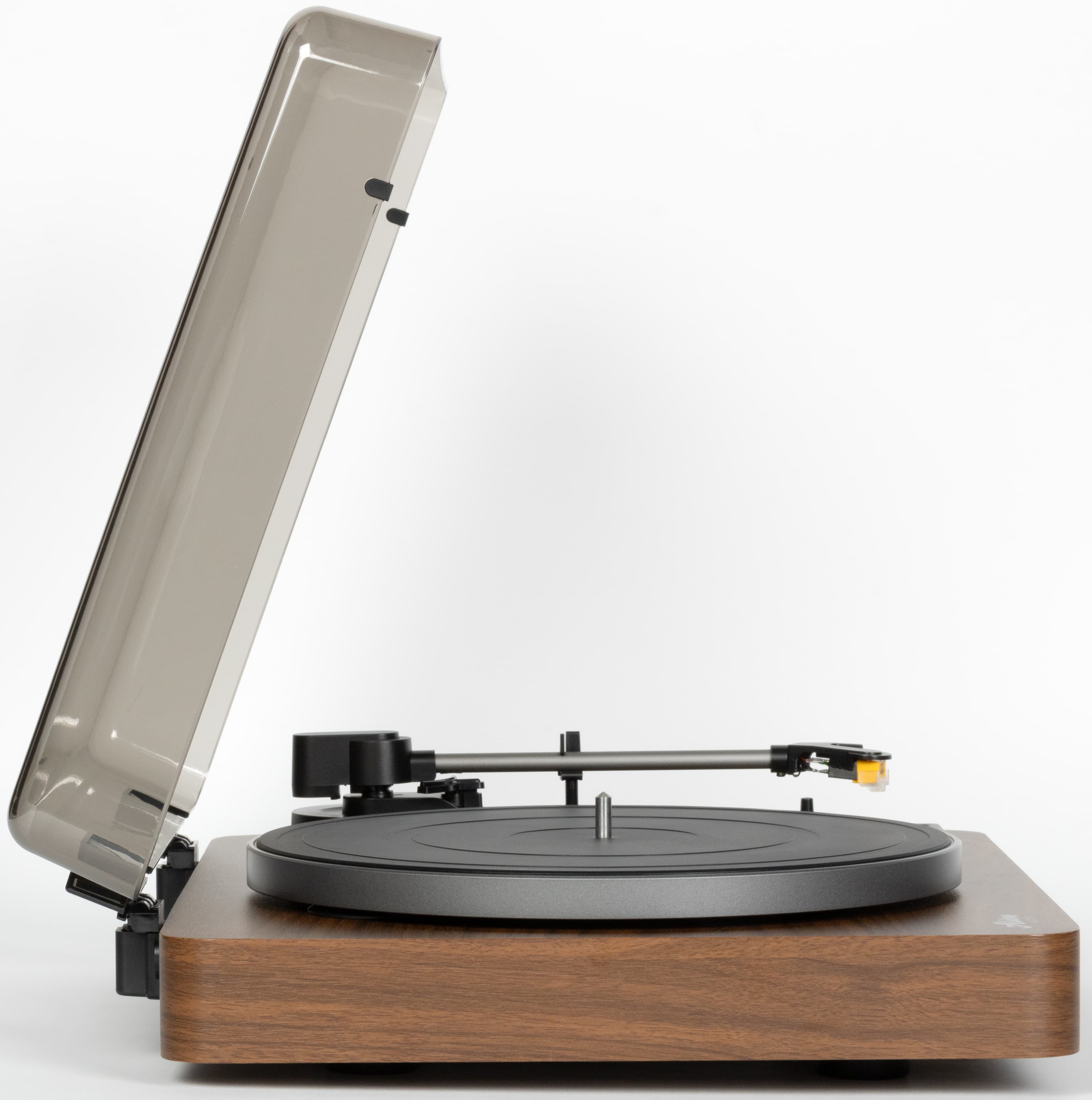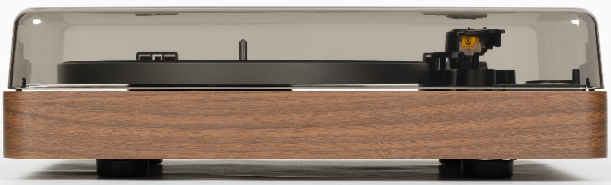 Пылезащитная крышка с легким дымчатым оттенком делает оформление более цельным, но не мешает наблюдать за вращением винила и движением тонарма.