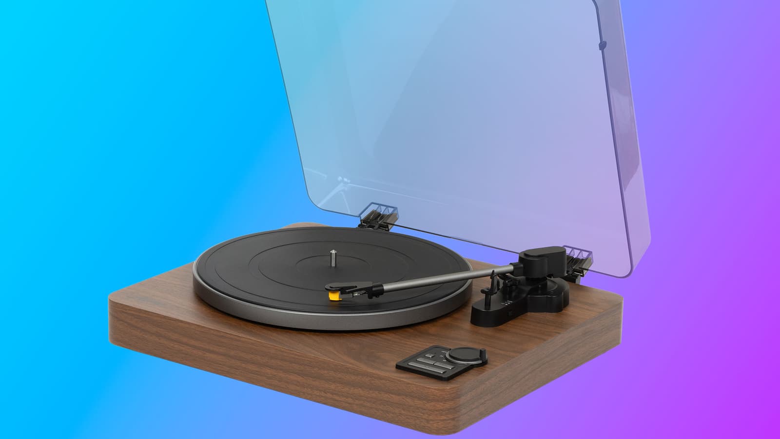 С небольшого расстояния крышка кажется довольно темной, но на деле она почти прозрачная: при взгляде сверху отлично видны все элементы управления, тонарм и даже надписи на «яблоке» пластинки. При этом крышка является съемной и поставляется отдельно — при большом желании проигрыватель можно использовать и без нее, правда бороться с пылью станет основательно посложнее.
