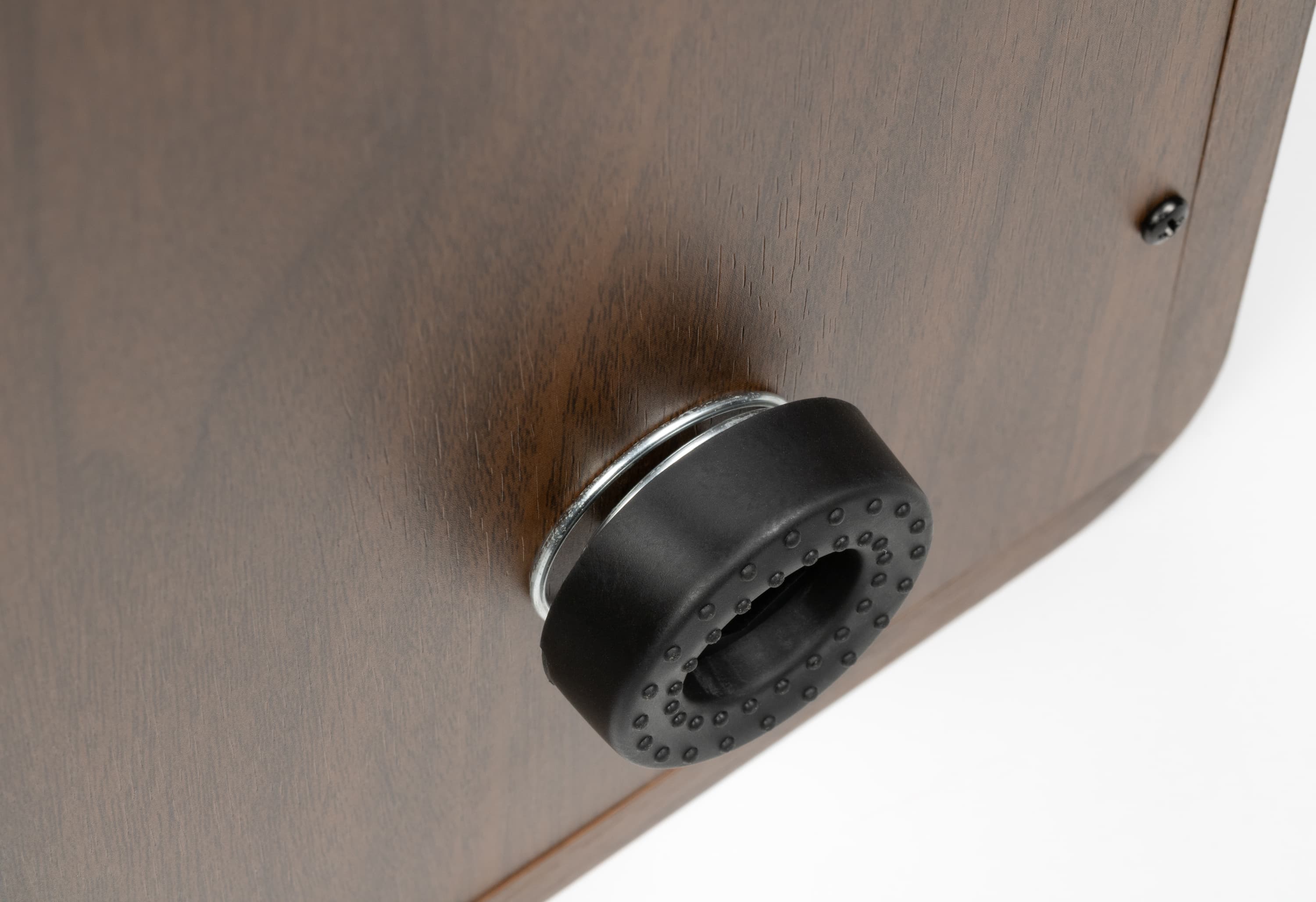 Корпус Alive Audio Magna довольно легкий — всего 4,5 кг. Для винилового проигрывателя это скорее минус: меньший вес снижает устойчивость к вибрациям. Частично компенсировать эту особенность помогают подпружиненные ножки, которые эффективно гасят нежелательные колебания. По крайней мере, игла проигрывателя точно не будет «прыгать» от того, что вы просто прошли мимо стола, на котором он стоит — это мы неоднократно проверили.