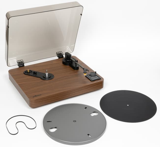 Про прочие характеристики тоже не забыли. В качестве картриджа используется Audio-Technica AT91 — решение по-прежнему крайне бюджетное, но всё же на одну ступеньку повыше самого простенького AT3600L, который мы регулярно встречаем в проигрывателях начального уровня. На борту есть классические RCA-выходы, которые могут работать как в режиме Line, так и Phono. Это значит, что при желании Alive Audio Magna можно подключить не только к усилителю или активной акустике, но и к системе с внешним фонокорректором. Для тех, кто предпочитает беспроводное подключение, есть поддержка Bluetooth. В общем, кандидат на звание «идеальный проигрыватель для новичка» у нас тут серьезный — посмотрим, насколько хорошо он покажет себя в работе.