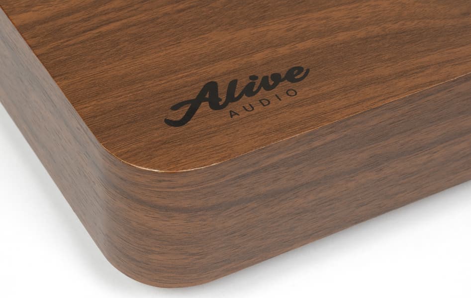 Alive Audio Magna выпускается в двух цветовых вариантах: строгом и лаконичном черном, а также более светлом — с отделкой «под дерево». У нас на тестировании была светлая версия. Проигрыватель выглядит скромно, но со вкусом — в его дизайне нет ни излишней декоративности, ни заметных признаков сравнительно невысокой стоимости устройства. Скругленные углы, компактный корпус и отсутствие ярких деталей помогают ему органично вписываться практически в любой интерьер.