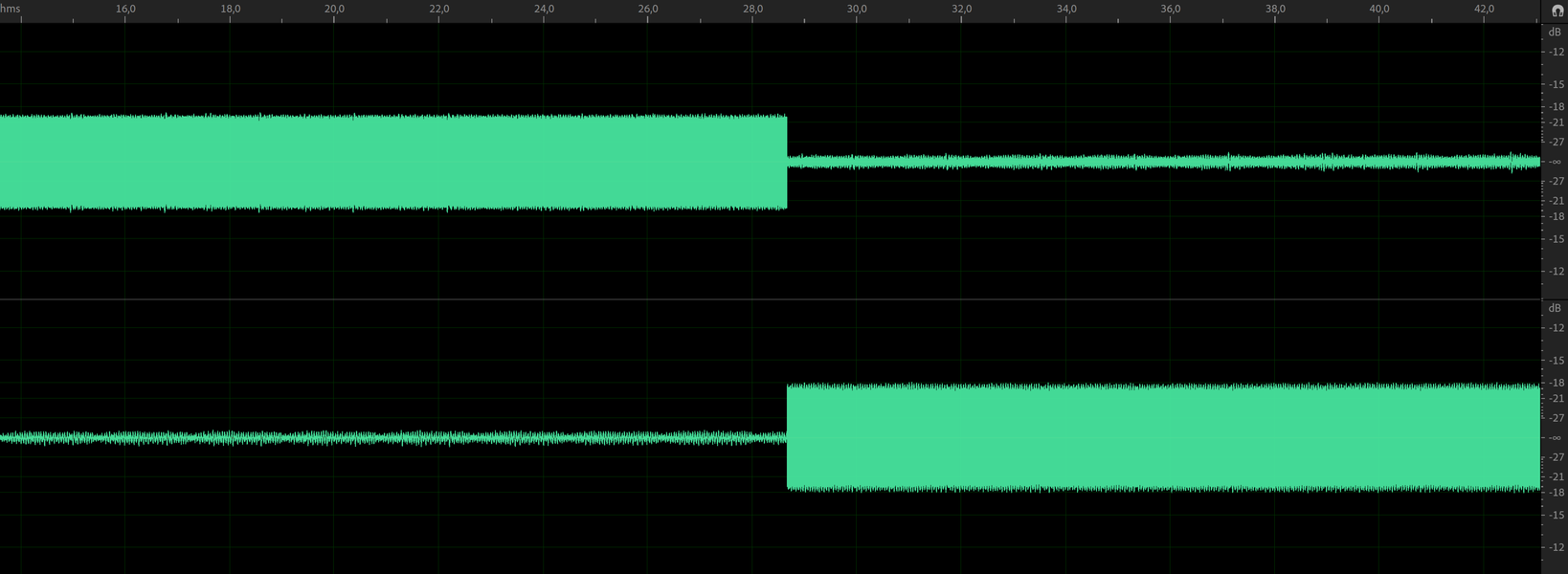Обычно первым делом мы настраиваем антискейтинг, но в этом проигрывателе он не регулируется. Посмотрим, как поведет себя игла — не будет ли ее заметно тянуть к центру. Для этого обратимся к специальной «тестовой пластинке». Ее авторы предлагают использовать для проверки выраженности скейтинга растущий по амплитуде сигнал частотой 315 Гц. В идеале он должен воспроизводиться без искажений в обоих каналах на протяжении всего времени своего звучания.