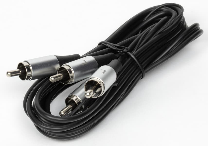Аудиокабель длиной 1,5 метра приятно удивил качеством. Он достаточно гибкий, ощущается прочным и надежным, коннекторы плотно фиксируются. Отдельный респект разработчикам за наличие у кабеля заземляющего провода с «лапками» для подключения к фонокорректору — такое в бюджетных моделях встречается крайне редко. Апгрейд системы с помощью недорогого внешнего фонокорректора в данном случае — вполне осмысленное решение, потому особенно приятно, что нужный кабель уже в комплекте.