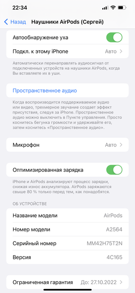 Разумеется, настроек шумоподавления, как в случае с AirPods Pro, здесь нет. Зато есть опция «Пространственное аудио», которой не было у AirPods 2.