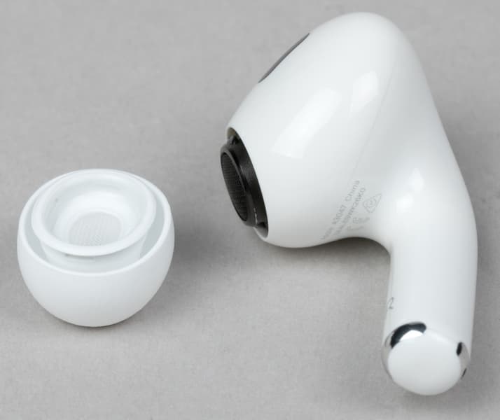 В первых AirPods Pro датчик ношения и внутренний микрофон «шумодава» были размещены рядом, во второй версии каждый получил собственное «окошко».