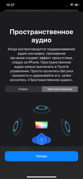 Что же касается «пространственного аудио», тот тут всё очень неоднозначно. До «вау-эффекта» там далеко, несмотря на всяческие настройки с помощью камеры и прочую «персонализацию». Тем не менее в Apple Music есть адаптированный под эту функцию контент, который звучит действительно впечатляюще — попробовать точно стоит. Специальный раздел в меню настроек позволяет сравнить звучание в формате «до и после».