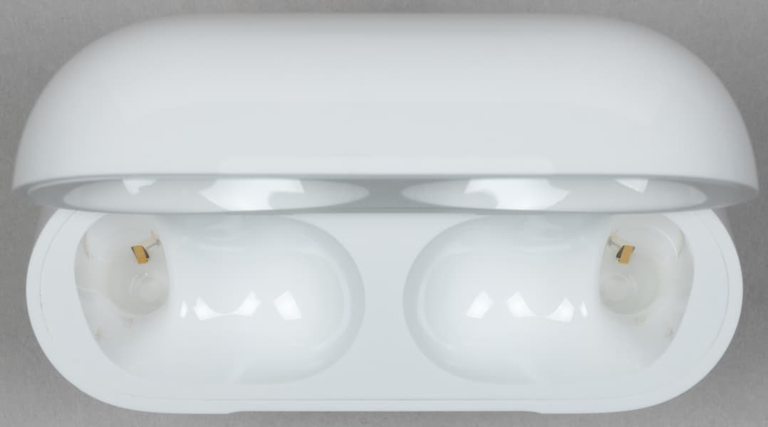 Наушники удерживаются на своих местах с помощью магнитных креплений. Внутри слотов видны подпружиненные контакты для зарядки.
