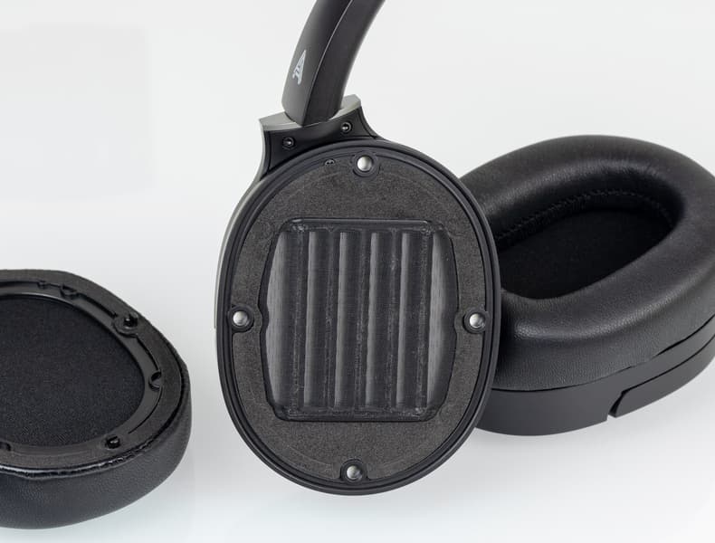 Излучатели намного меньше, чем в классических моделях Audeze. Но по сравнению с традиционными динамическими наушниками других производителей мембрана LCD-1 все равно имеет внушительный размер. Чувствительность довольно высокая для планарно-магнитных излучателей, 99 дБ/мВт. Импеданс 16 Ом — один из самых низких для такого типа излучателей. Мы попробовали подключить LCD-1 к мобильному устройству с ЦАП ESS и усилителем и обнаружили хорошую согласованность. Громкости хватало, и в целом наушники играли довольно привлекательно.