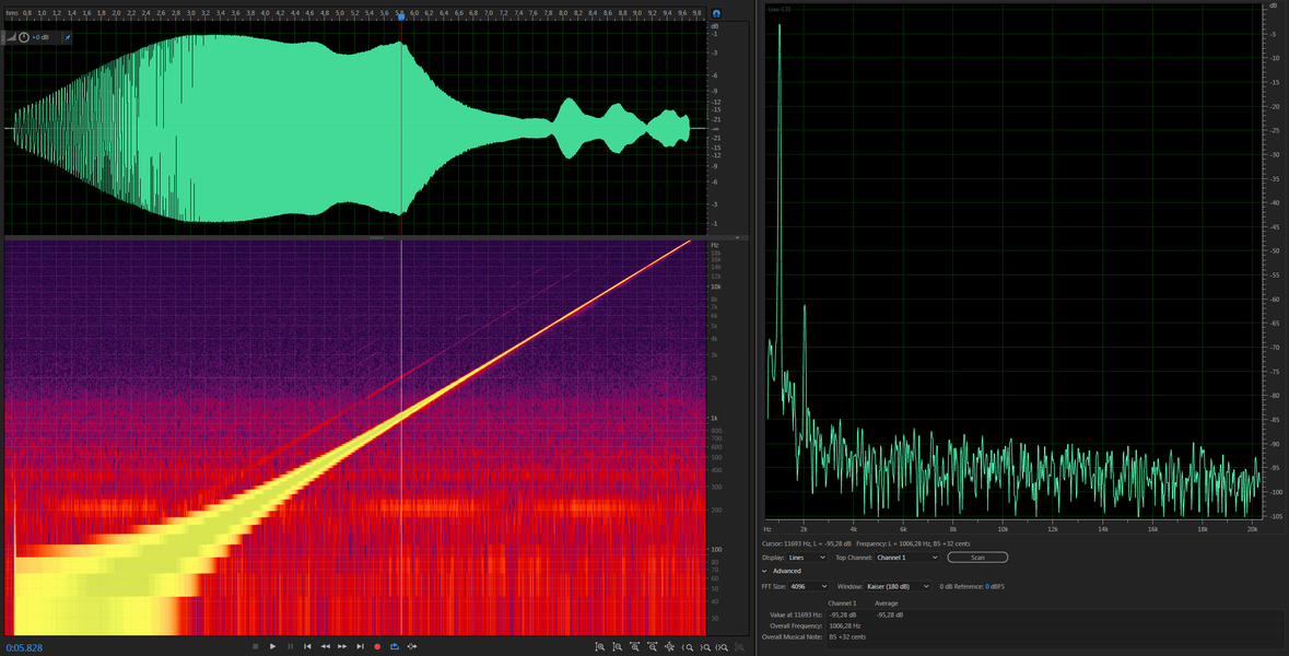 Как видно на графике, спектр искажений по всему диапазону состоит из второй гармоники мощностью около −60 dBFS (0,1%). Согласно исследованиям, вторая гармоника считается маскируемой основным тоном и не слышна вплоть до значений в единицы процентов, тогда как гармоники высокого порядка (на графике искажений Audeze LCD-4z они отсутствуют) считаются резко слышимыми и особенно неприятными на слух. Так, пятая гармоника величиной в 0,001% считается страшнее для звука, чем третья в 0,1%. Это ответ на вопрос, как в колонках и наушниках, с их несовершенством, можно услышать искажения современной аппаратуры и как один аппарат с 0,1% искажений может звучать лучше, чем другой с 0,01%. Все зависит от вида искажений и их психоакустической маскировки. Слух человека и последующая обработка в мозге человека — вещь очень нелинейная, избирательно относящаяся к искажениям разной природы. По причинам слабой изученности работы слуха, головного мозга и расшифровки звуковых образов нельзя однозначно по графику предсказать, понравится ли звучание слушателю. Когда мы тестировали отвратительно звучащие наушники, мы получили 5% искажений и высокую третью гармонику.