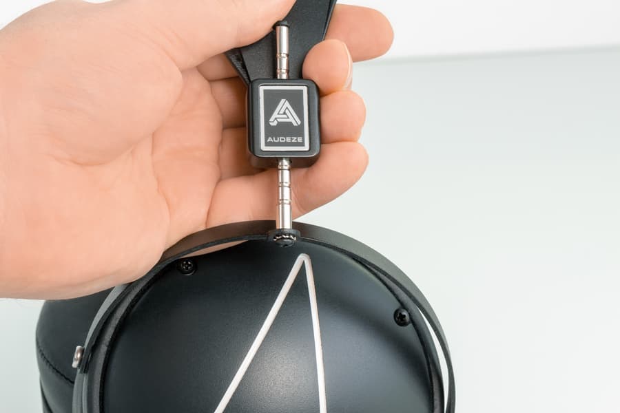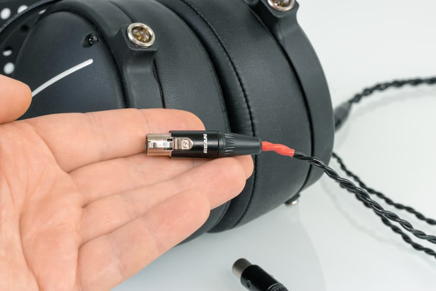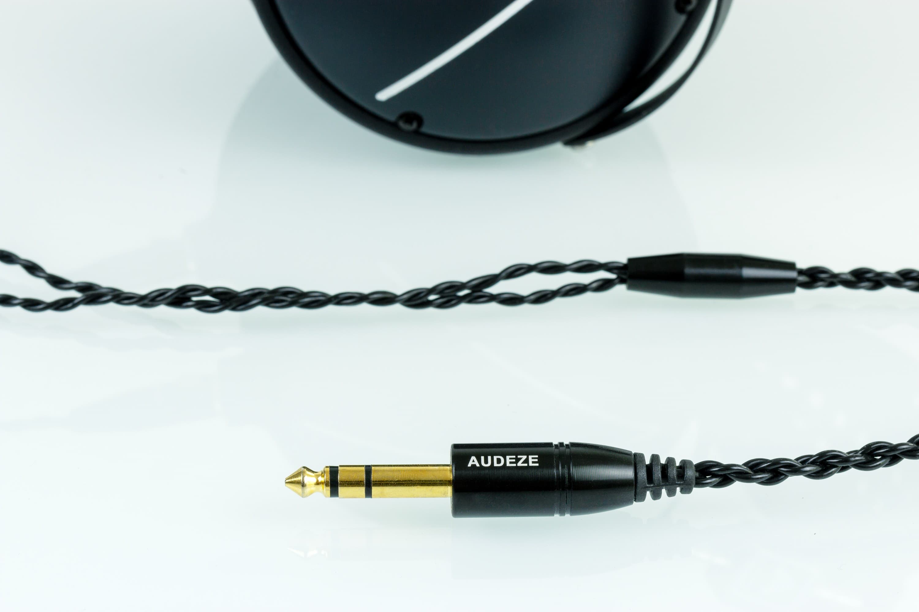 Кабели подключаются раздельно к каждому наушнику. В комплекте 2-метровый шнур 1/4″ TRS (большой джек) на 4-контактные Mini-XLR. Отдельно можно докупить фирменный кабель на балансный 4-контактный полноразмерный разъем XLR. Подойдет кабель от любых аналогичных наушников Audeze, а также сторонних производителей.