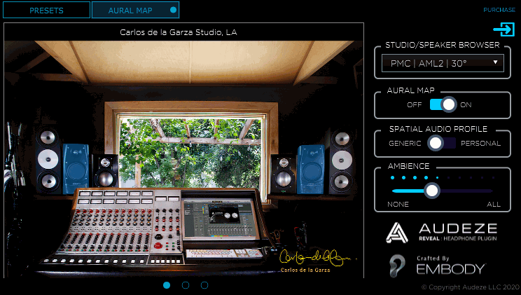 Платная версия Reveal (с ценой 200 долларов) позволяет использовать профиль слушателя для эмуляции мониторов в контрольной комнате студии звукозаписи. Audeze предлагает сразу несколько вариантов студий и мониторов на выбор пользователя.