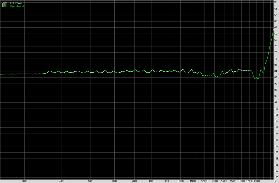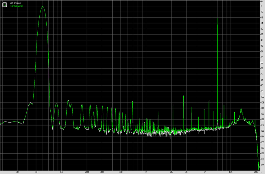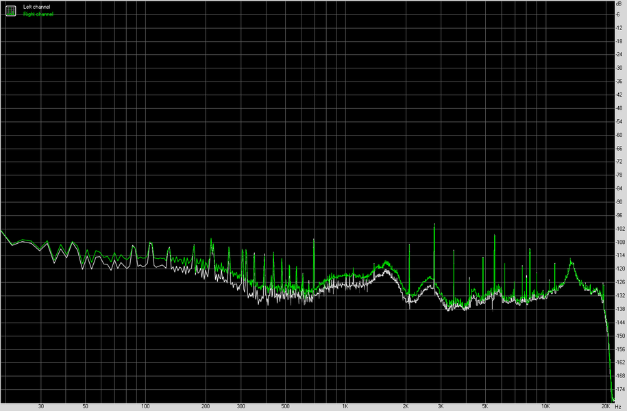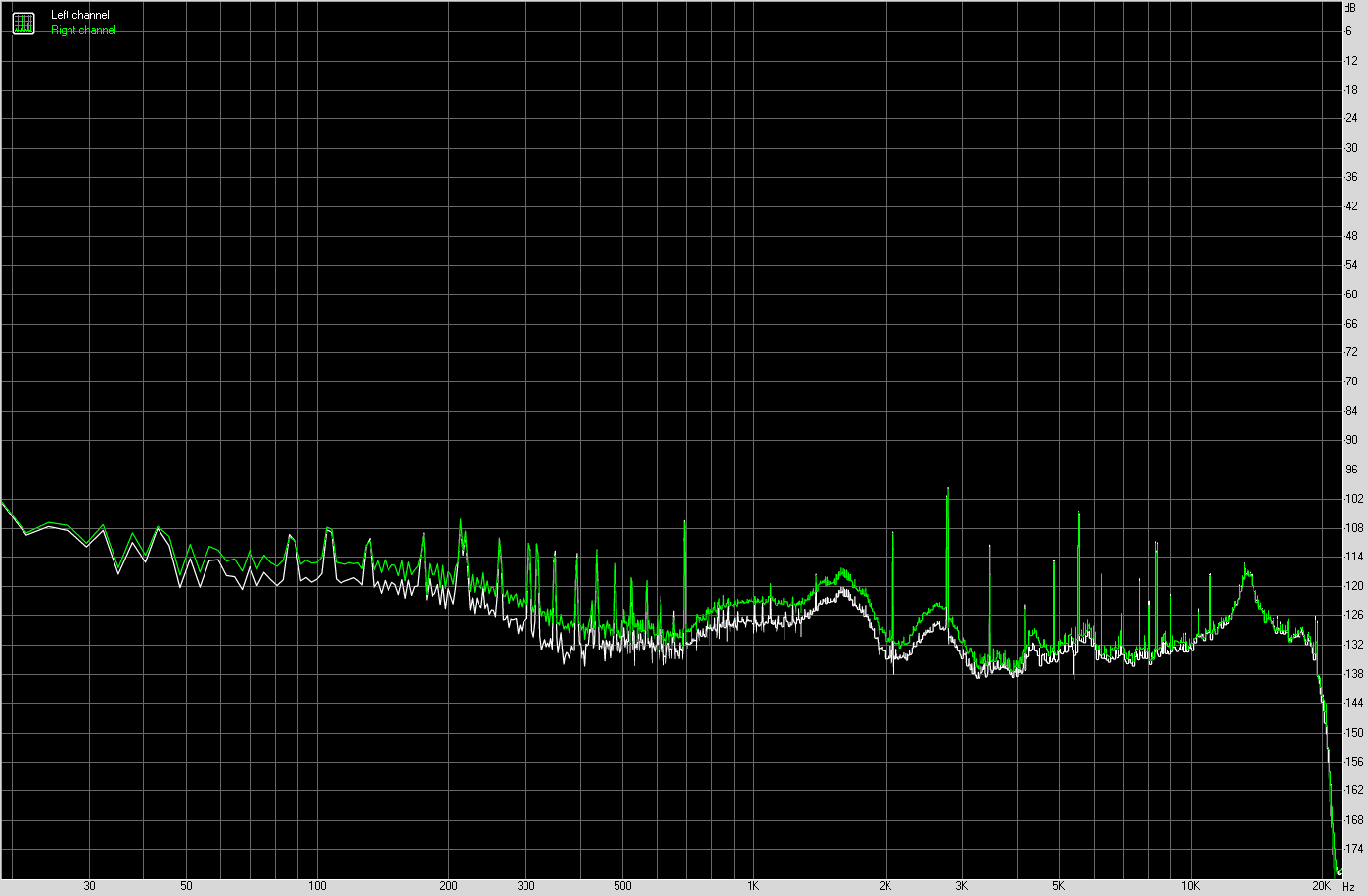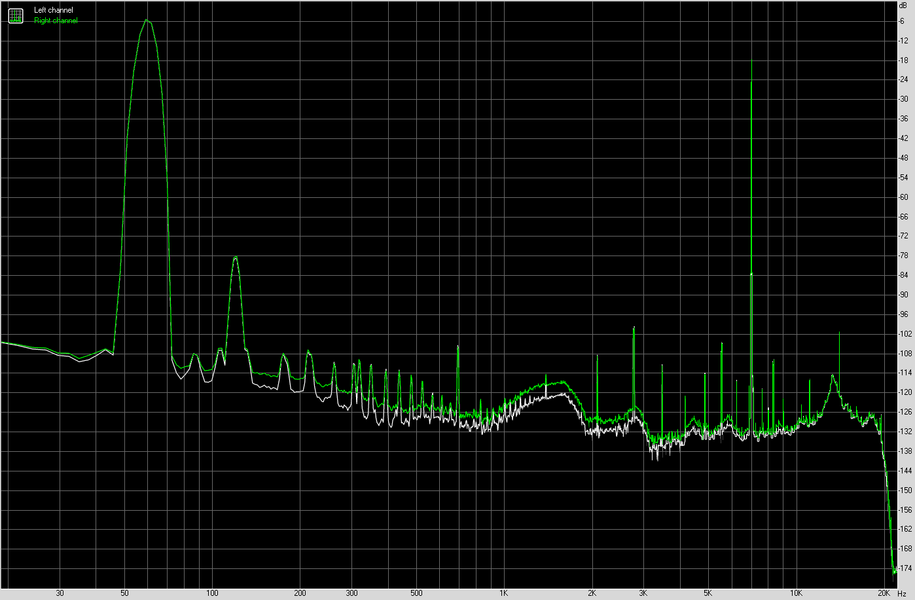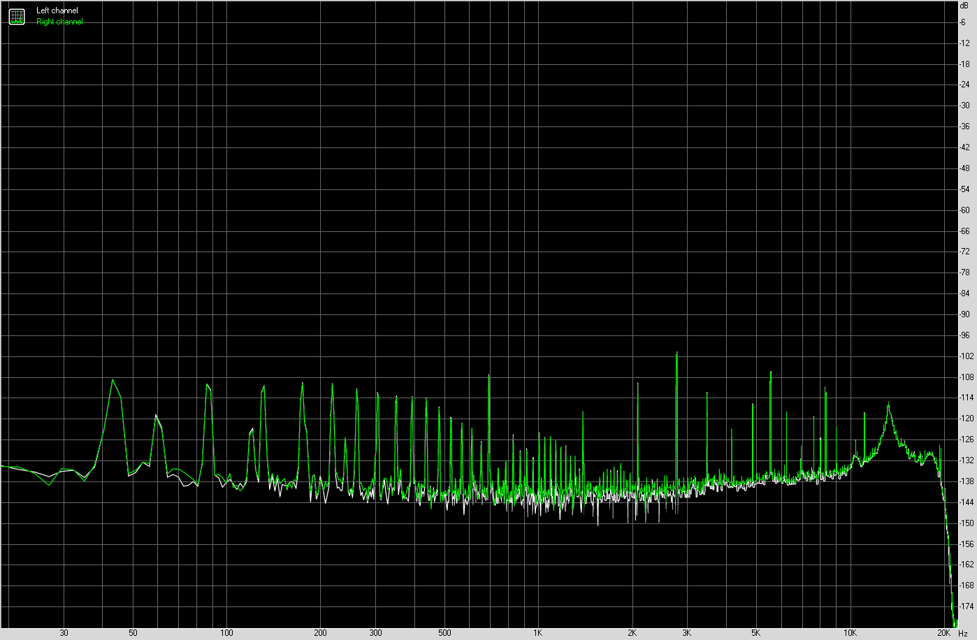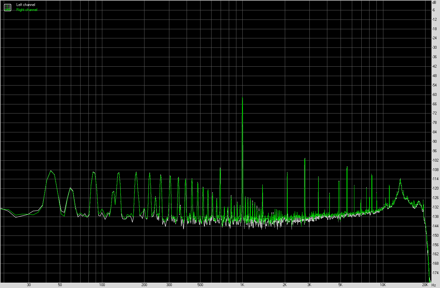 Измерения проводились с помощью АЦП E1DA Cosmos в режиме 24 бит/96 кГц. А приводятся они, как мы всегда отмечаем, исключительно как иллюстрации — делать на их основе однозначные выводы о качестве устройства не следует. Первую серию измерений мы провели в режиме OP — без задействования встроенной лампы. Общая оценка — очень хорошо. Учитывая специфику и далеко не самую высокую стоимость устройства, это успех.