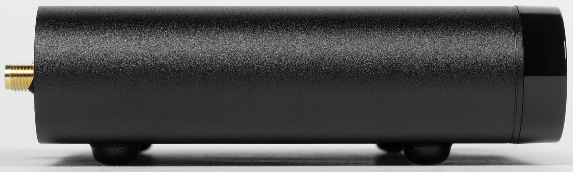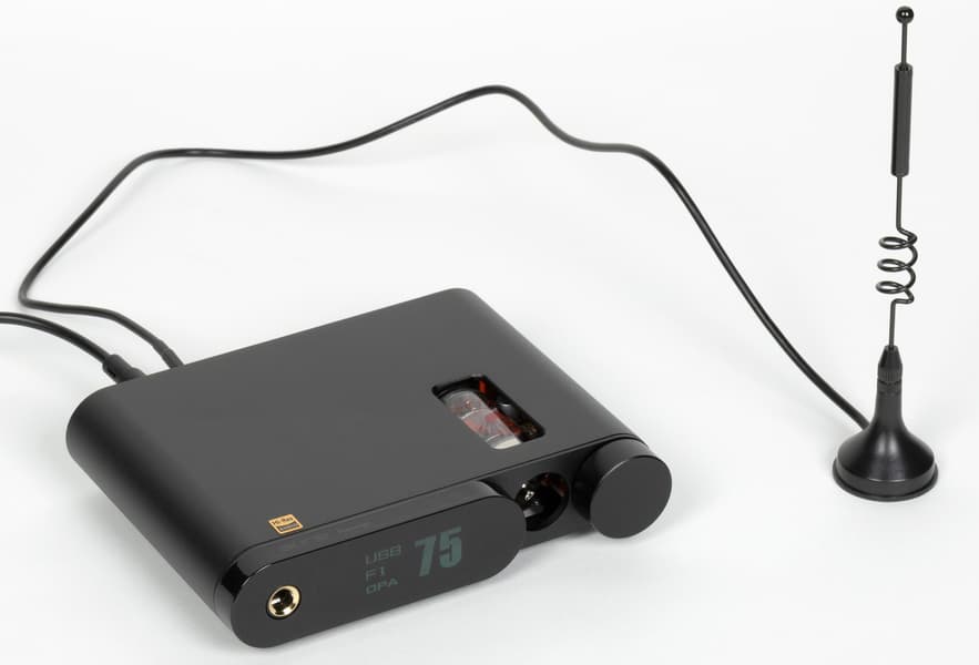 Почти все разъемы для подключения размещены на задней стенке. К RCA с регулируемым уровнем громкости можно присоединить активные мониторы или внешний усилитель, работает он в обоих режимах. Далее мы видим разъем для подключения коаксиального кабеля S/PDIF, следом порт USB-B. В штекер для антенны есть смысл сразу вкрутить одну из антенн на выбор. Ну и, наконец, питание — разъем и выключатель.