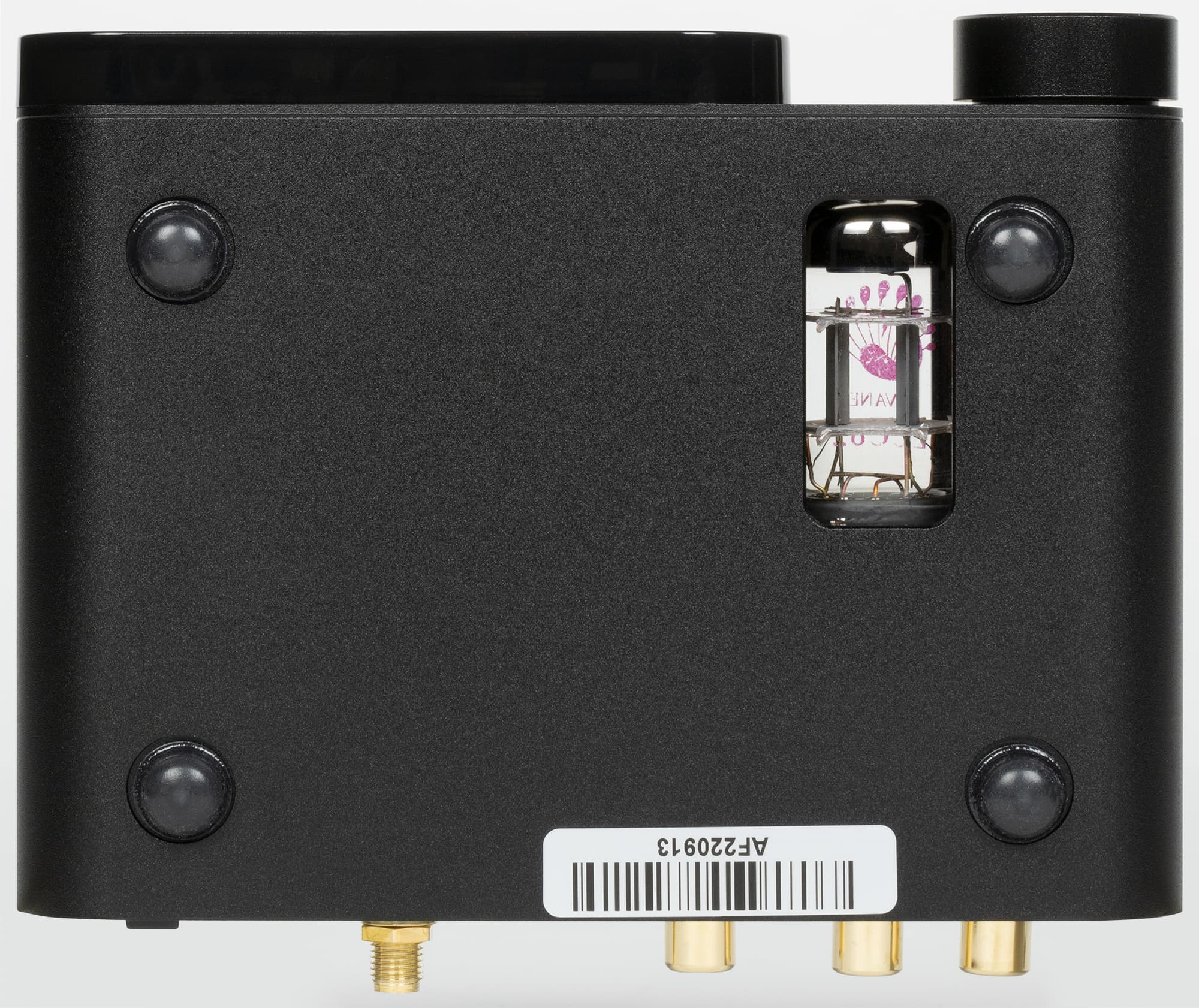 Строгий матовый черный корпус из алюминия, округлые очертания и, конечно, лампа в специально предназначенном для нее окошке — выглядит «цапоусилитель» очень эффектно.