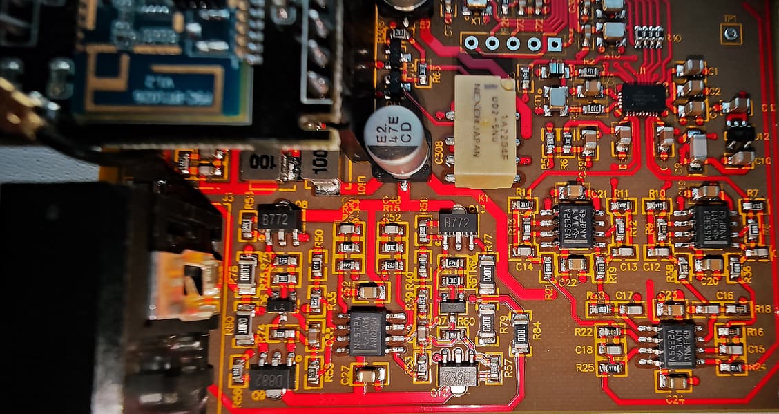 Нижняя часть платы отдана под операционные усилители NE5532 производства Texas Instruments.