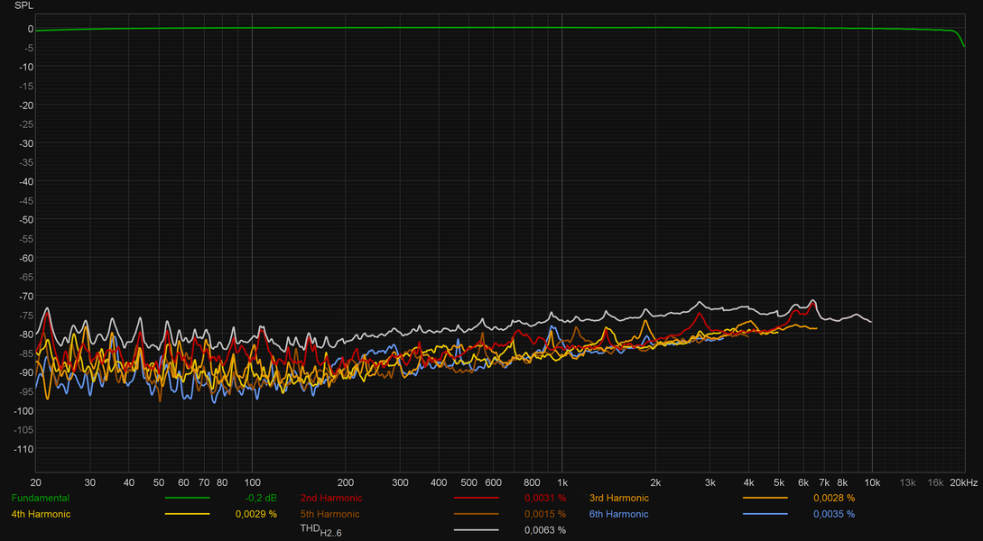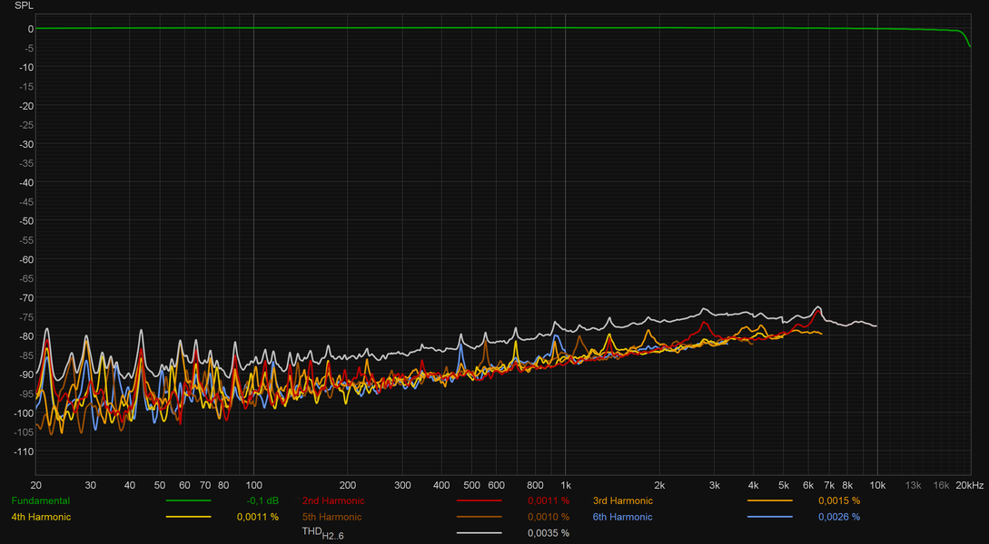 А вот графики искажений различаются куда сильнее, чего и следовало ожидать. При этом разница не так заметна, как если рассматривать полновесные ламповые усилители и их транзисторных собратьев, да и акцент именно на четных гармониках выражен слабее — с учетом конструкции прибора, о которой мы говорили выше, удивляться тут нечему. Так что «лампового звучания» Aune Audio Flamingo нам обеспечит, но в ограниченных объемах.