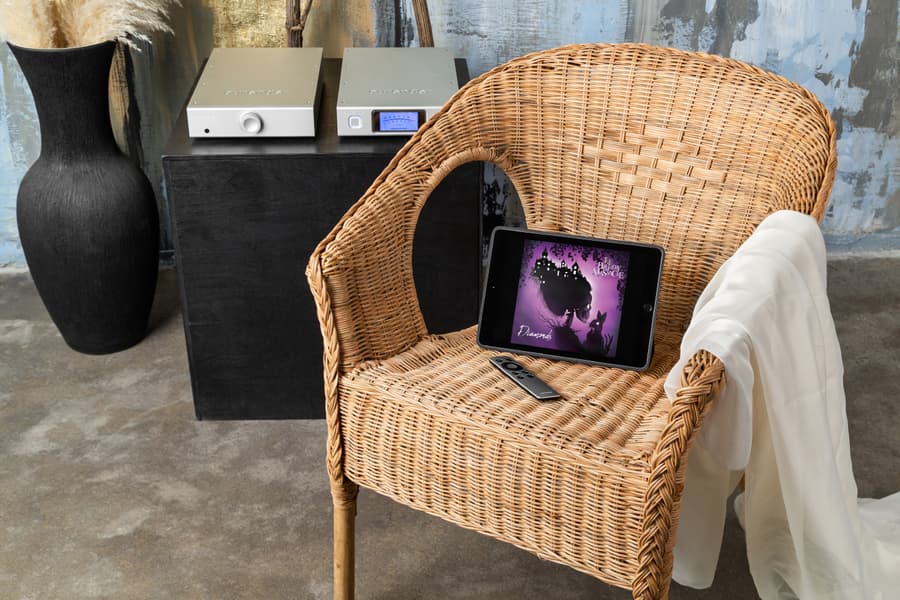 В тестировании Aurender X725 принимал участие совместно с хорошо знакомым нам сетевым аудиоплеером Aurender N100C. По всему видно, что они прямо-таки «созданы друг для друга»: легко подключаются и отлично работают вместе, корпуса одного размера и дизайна прекрасно смотрятся рядом, более того — у X725 нет собственной системы индикации, вся информация передается на дисплей аудиосервера. Но при этом совместная работа тестируемого устройства именно с плеерами Aurender не является обязательной — к этому вопросу мы еще вернемся.