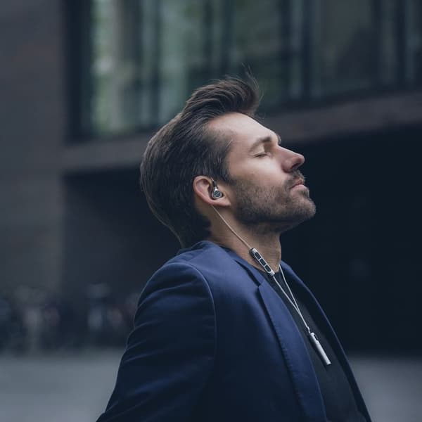 Форма у гарнитуры, как уже упоминалось выше, весьма своеобразная — с подключенным беспроводным модулем она напоминает подвеску или кулон, который крепится на уши. Форма наушников рассчитана на то, что провод от них будет расположен за ухом. Возьмем изображение из промо-материалов и посмотрим на то, как производитель предлагает носить Xelento Wireless.