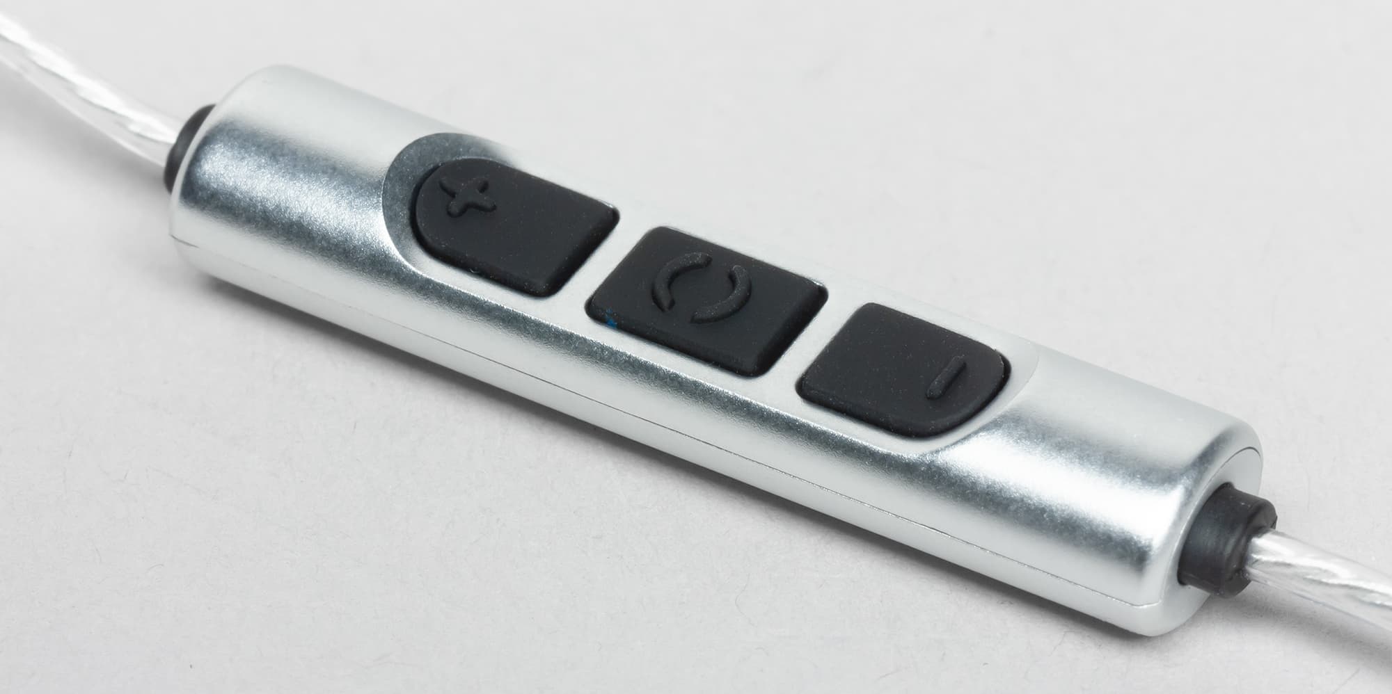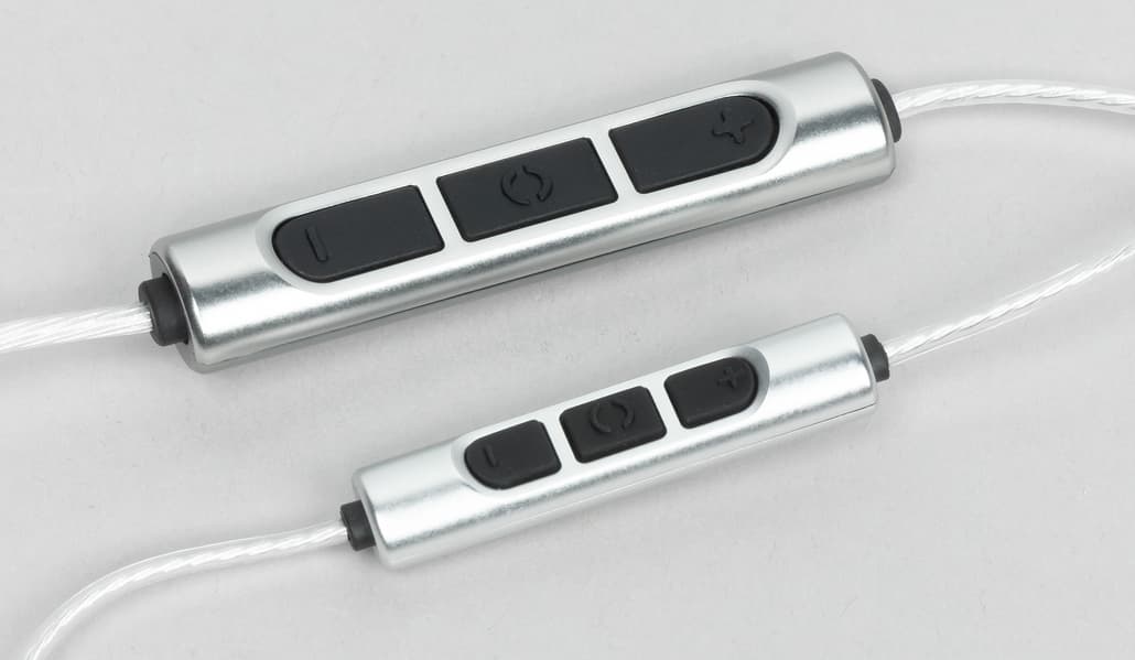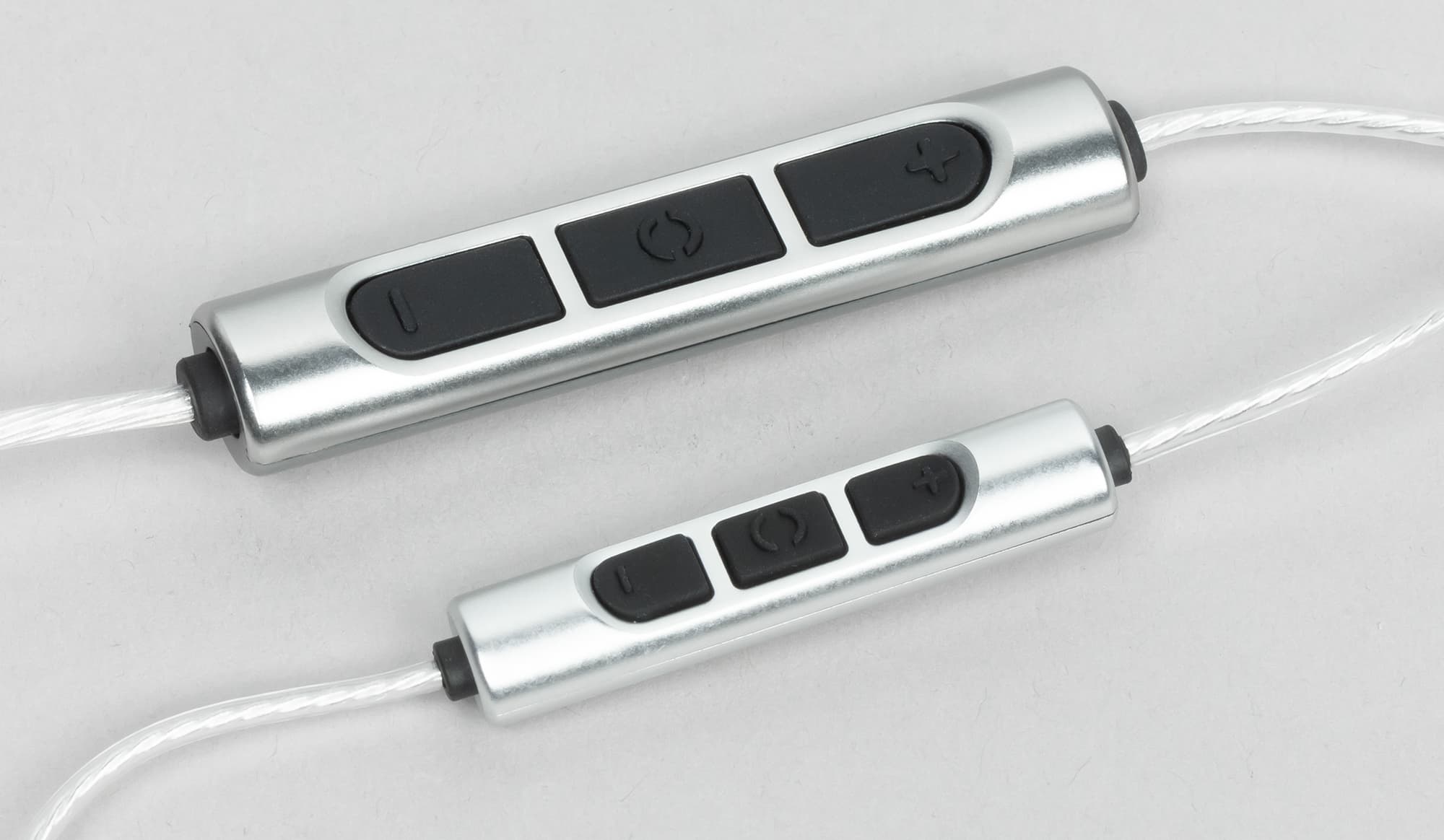 Кабель для проводного подключения и беспроводной модуль оснащены пультами управления. По форме они мало отличаются, но пульт на Bluetooth-модуле несколько крупнее.