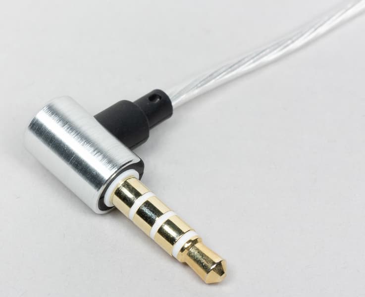 Отверстие звуковода закрыто металлической сеткой и имеет овальную форму. Если присмотреться к коннектору провода правого наушника на фото ниже, можно заметить на нем небольшую выступающую точку, которая позволяет на ощупь определить, какой из наушников у вас в руках.