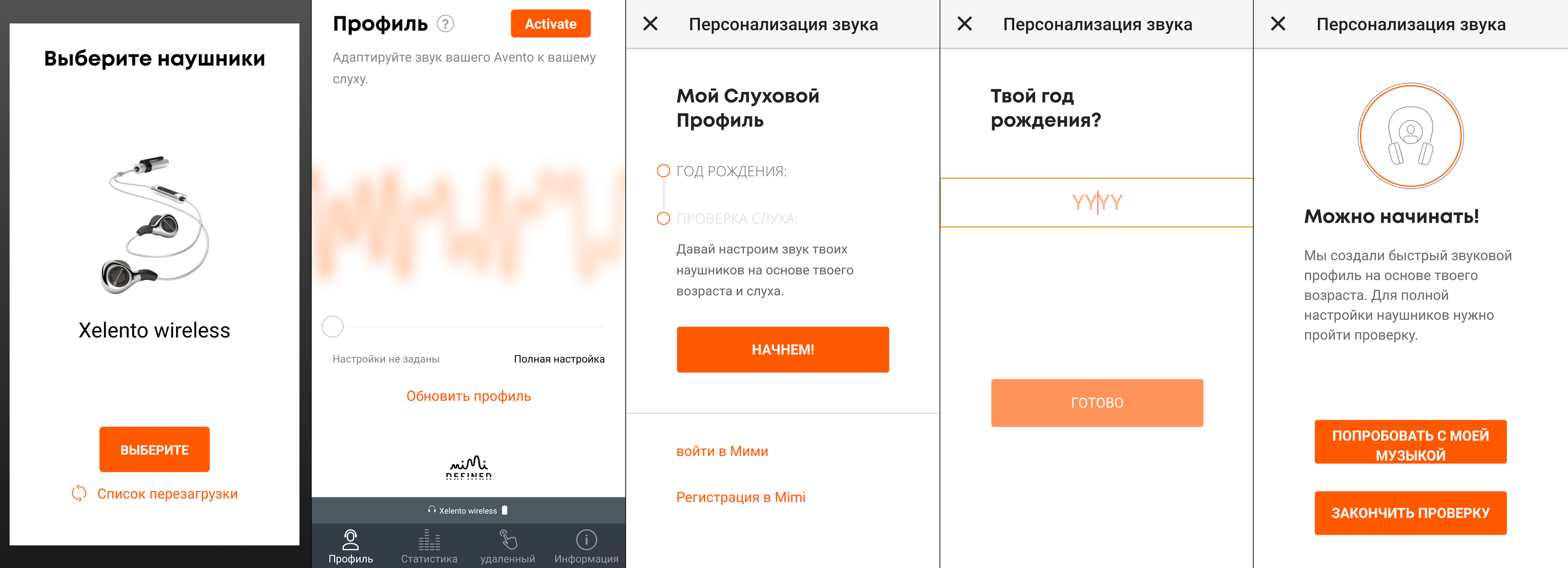 Далее можно продолжить проверку слуха и создать индивидуальный профиль. Для этого нужно надеть гарнитуру, после чего удерживать кнопку на экране в то время, пока вам удается услышать воспроизводимые программой звуки различной частоты и громкости. После того, как профиль сохранен, можно плавно регулировать степень обработки звука с его помощью. О звучании гарнитуры мы еще поговорим подробно, пока же скажем, что изменения при подключении профиля заметны и делают звук несколько более комфортным.