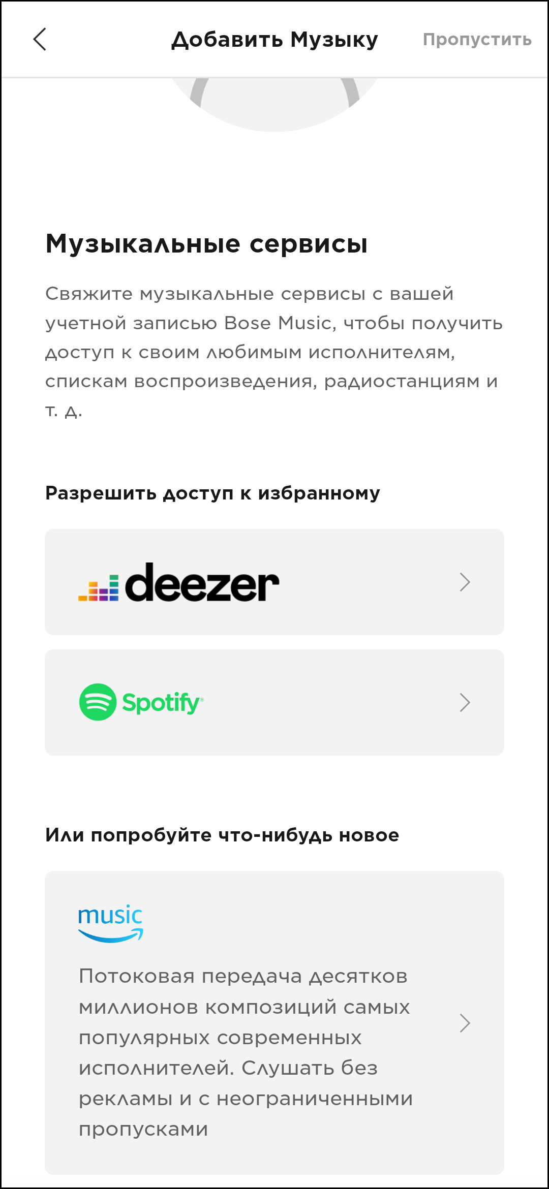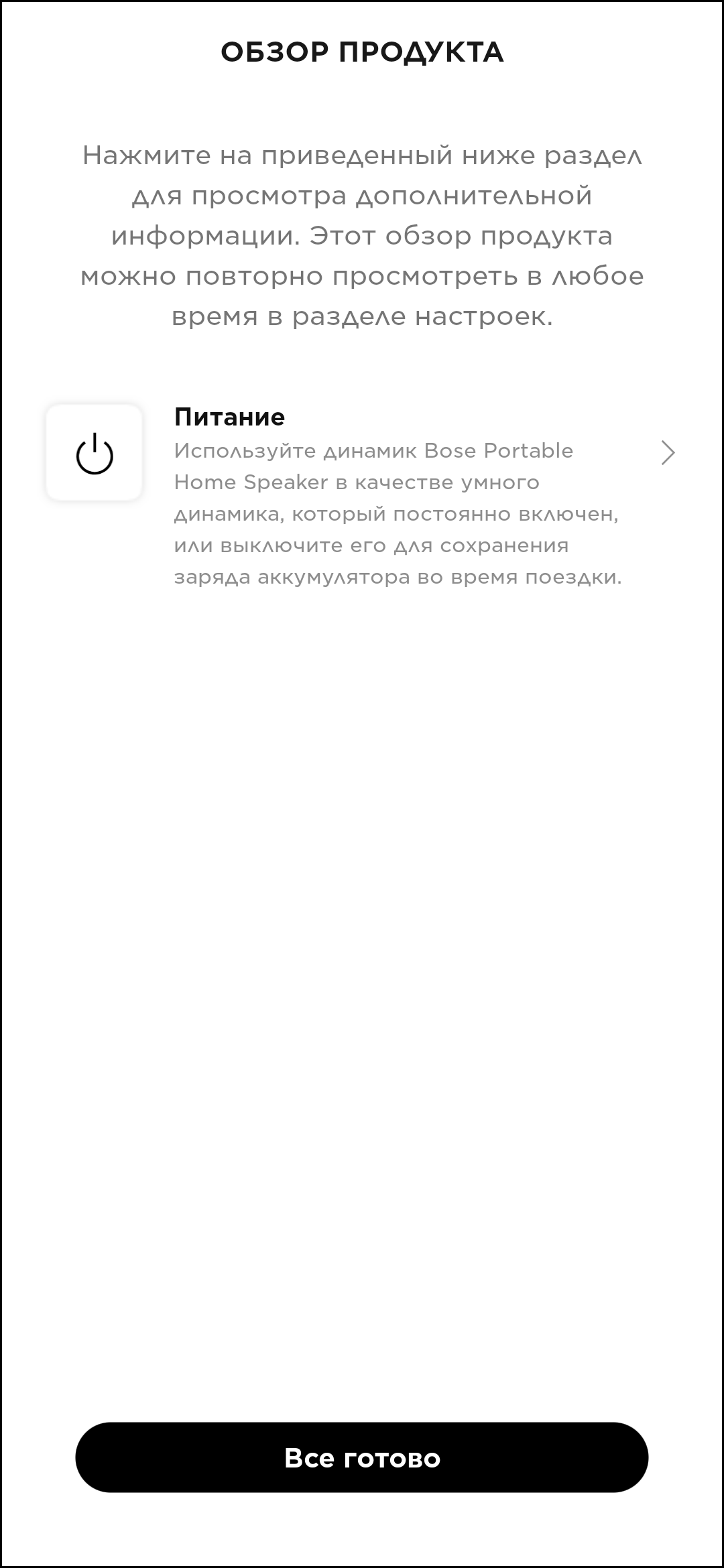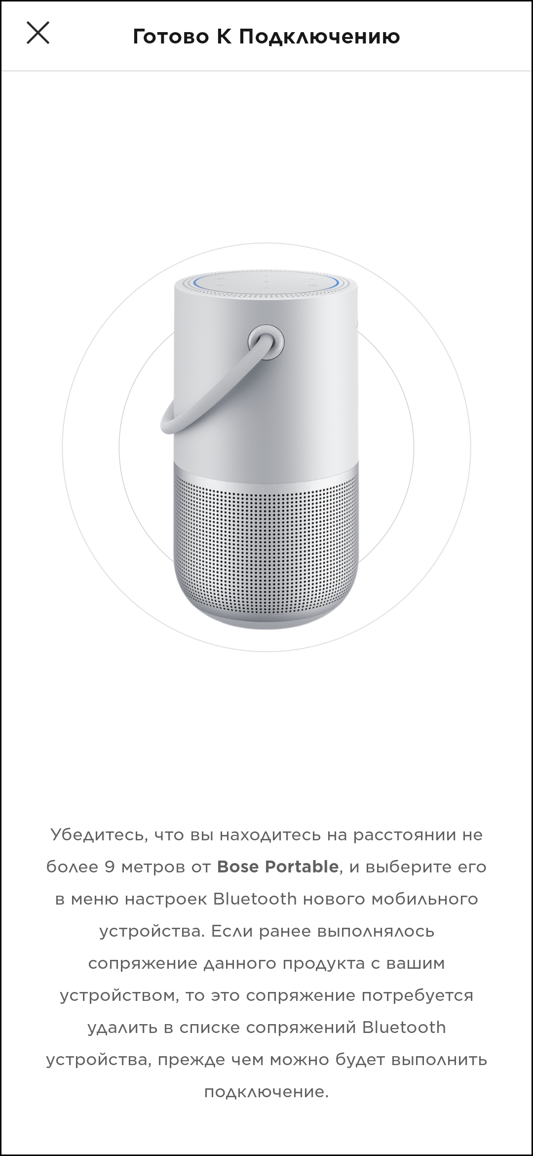 Bose Music поддерживает множество продуктов от компании, которые можно собирать в мультирум-решения. Но об этом мы сегодня говорить не будем, просто настроим одну колонку. Выбираем нужный раздел на экране подключения, программа подсказывает, как активировать соответствующий режим на устройстве.