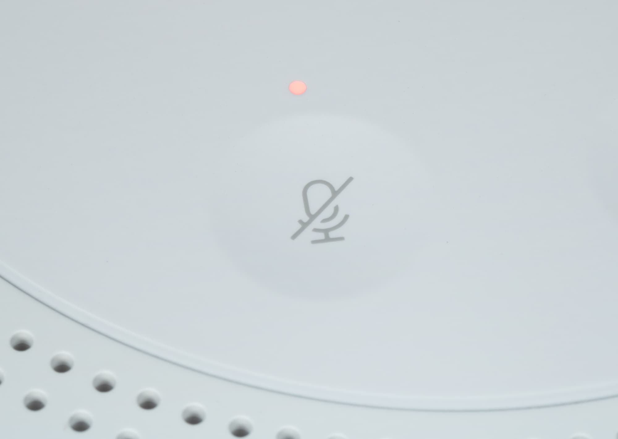В верхней части корпуса расположена панель управления с трехцветным индикатором режимов работы в виде кольца. Вокруг панели размещены отверстия микрофонов, служащих для «общения» пользователя с голосовым помощником.