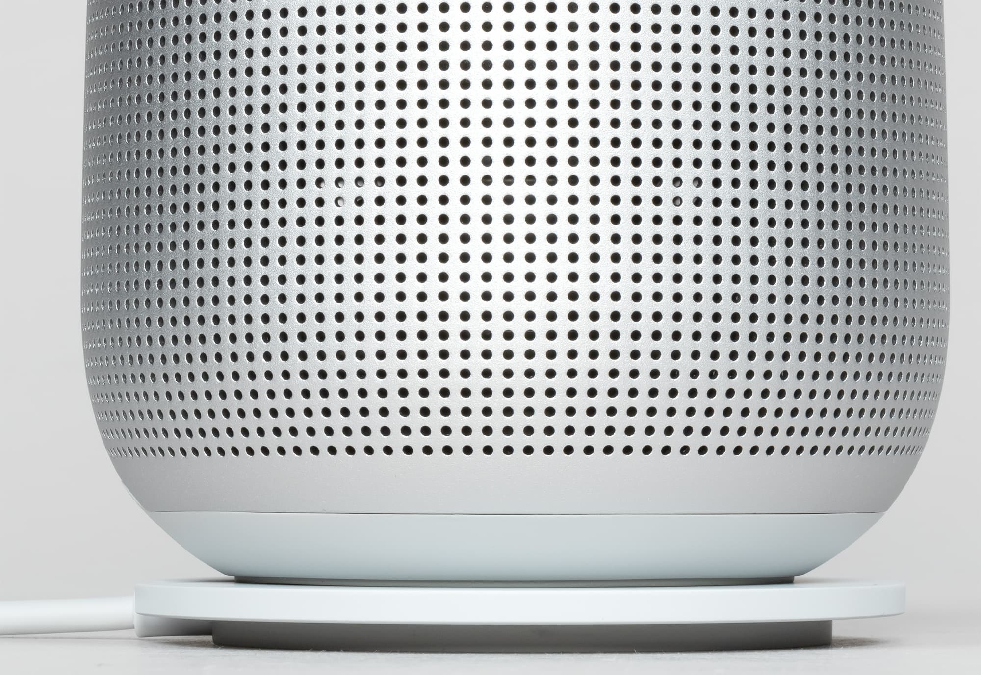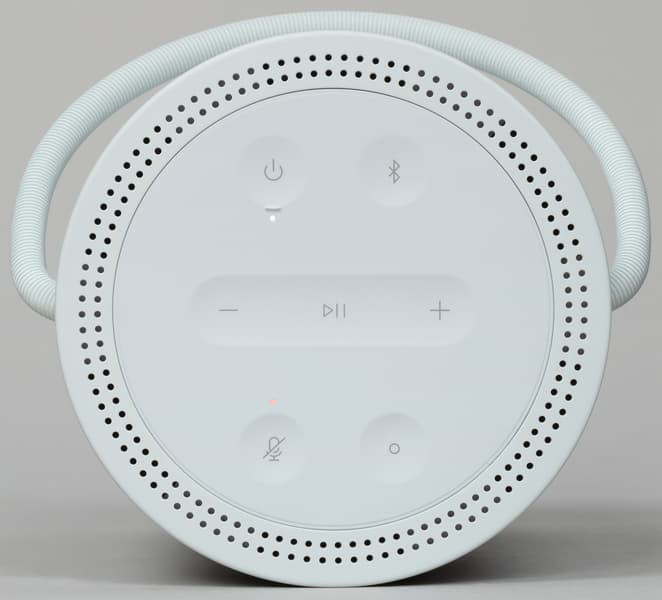Управлять колонкой можно как через приложение, так и с помощью панели на верхней части корпуса. Покрытие soft touch дает очень приятное тактильное ощущение при нажатии. На панели присутствуют клавиши управления воспроизведением и громкостью, питания, активации Bluetooth, отключения микрофона и вызова голосового помощника.