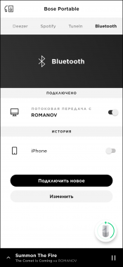 Одновременное Bluetooth-подключение нескольких источников колонка не поддерживает. Для передачи звука используется исключительно кодек SBC, что немного обескураживает — все-таки устройство довольно дорогое, вполне уместно было ожидать от него поддержку хотя бы AAC.