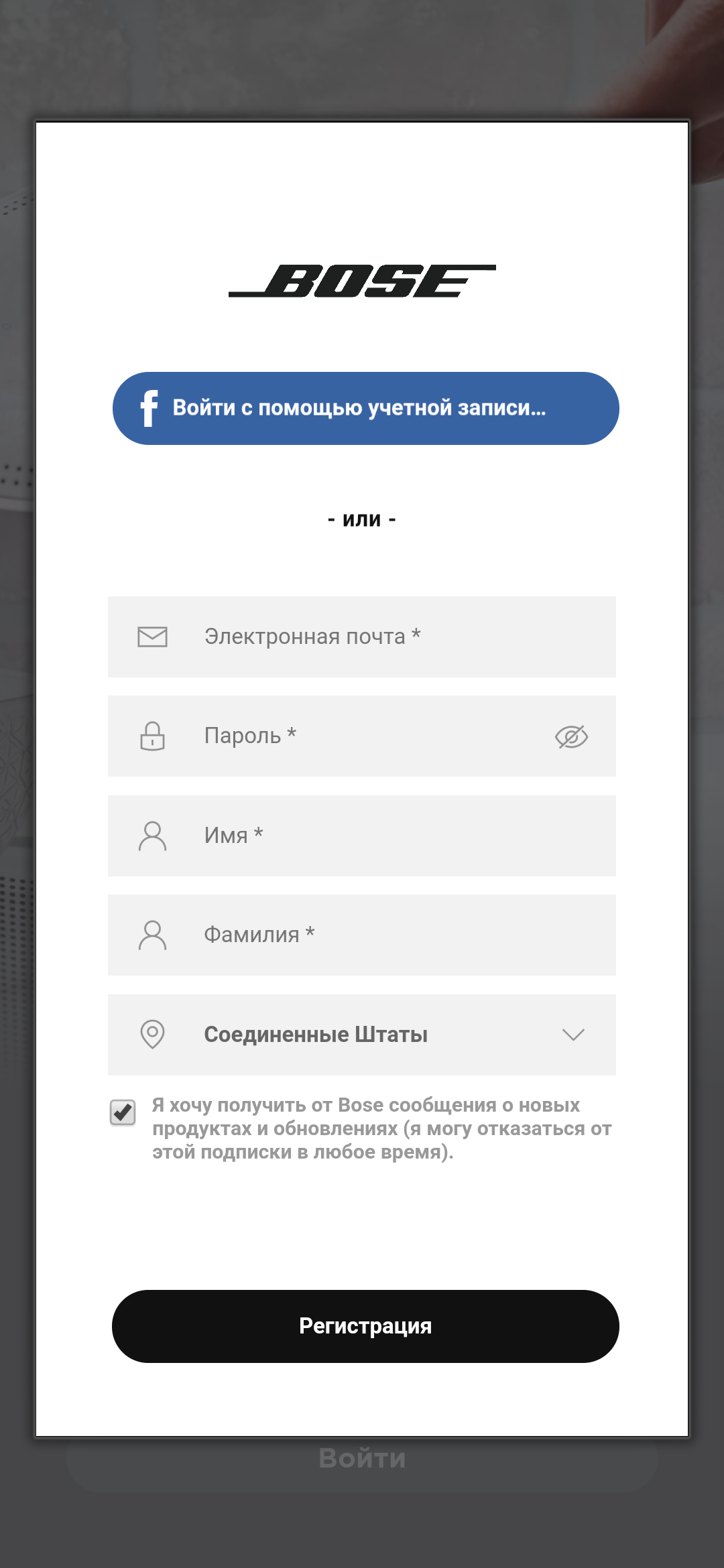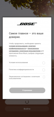 Работа колонки плотно «завязана» на приложение Bose Music. Существуют версии под Android и iOS, мы для тестирования выбрали первый вариант. Для начала скачиваем приложение и создаем аккаунт, если его еще нет.