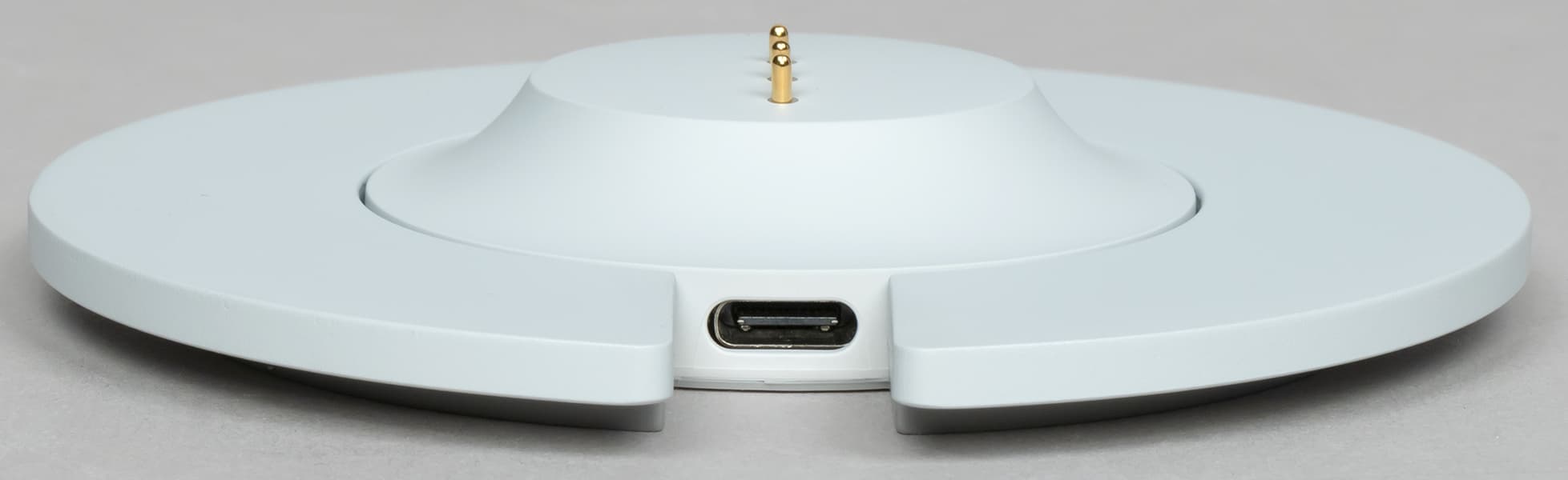 Заряжать колонку можно с помощью разъема USB Type-C в нижней ее части, либо докупить специальную док-станцию.
