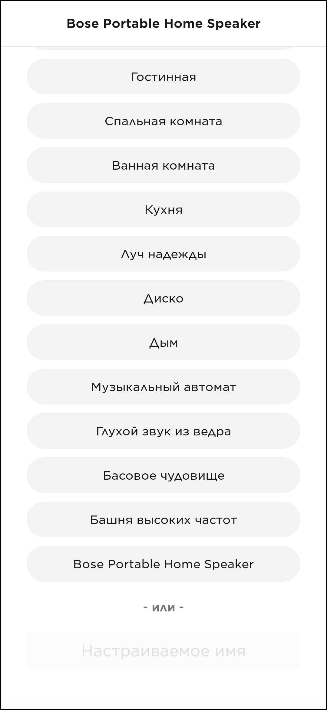После этого программа предлагает переименовать колонку, что может быть полезно опять-таки при создании мультирум-конфигураций. Среди предлагаемых названий — «Луч надежды», «Басовое чудовище» и даже «Глухой звук как из ведра».