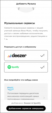 Программа обнаружила установленные на смартфон приложения Deezer и Spotify, после чего сразу предложила добавить их в список источников музыки. Deezer давно присутствует в России официально, Spotify пока нет, но ходят слухи, что вот уже совсем-совсем скоро. Правда, ходят они давно и не в первый раз. После авторизации в обоих сервисах нам было предложено ознакомиться с небольшой инструкцией по использованию колонки.