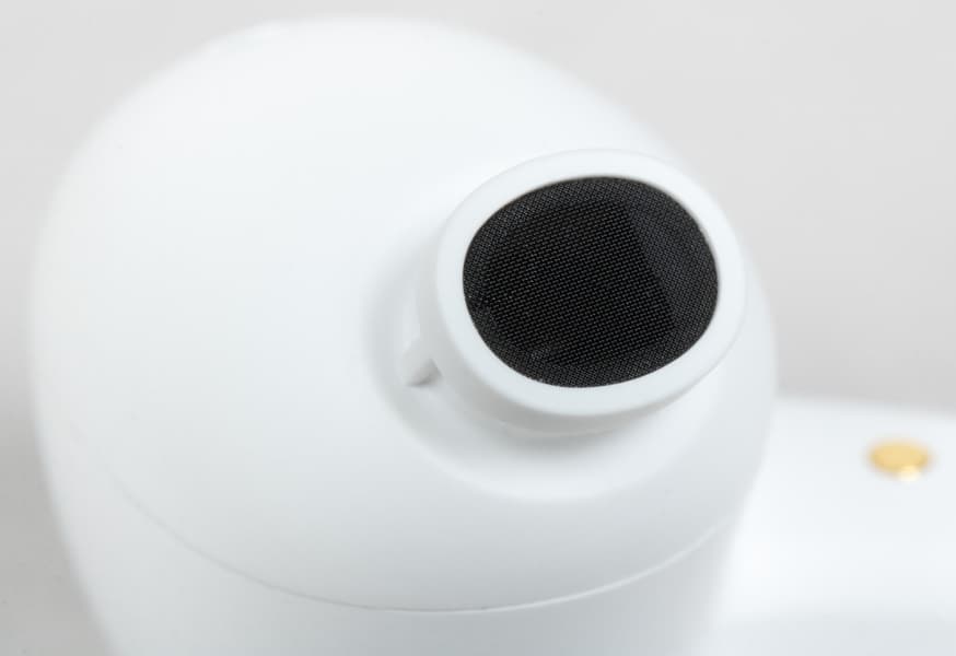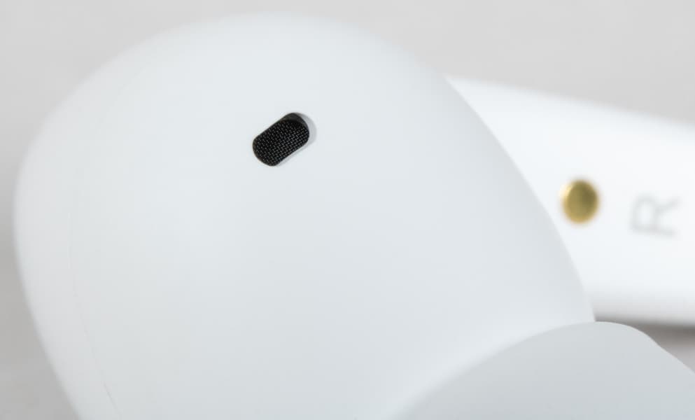 Отверстие для микрофонов размещено на внутренней части «палочек» и помещено в специальное углубление, потенциально защищающее микрофоны от «задувания» в ветреную погоду и при активном движении.